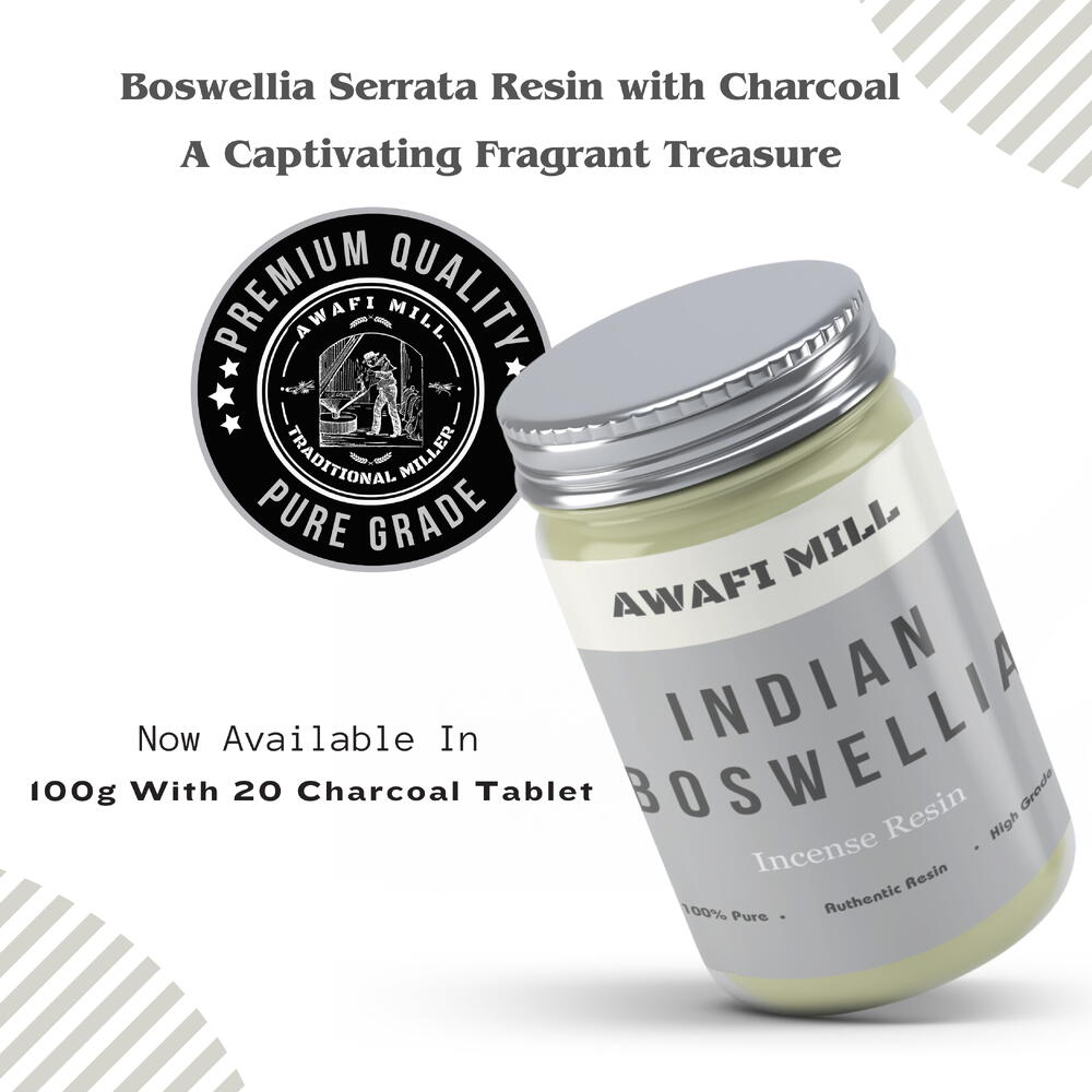 AWAFI MILL Индийская Boswellia serrata | Угольная таблетка - Бутылка 100 грамм с 20 угольными таблетками