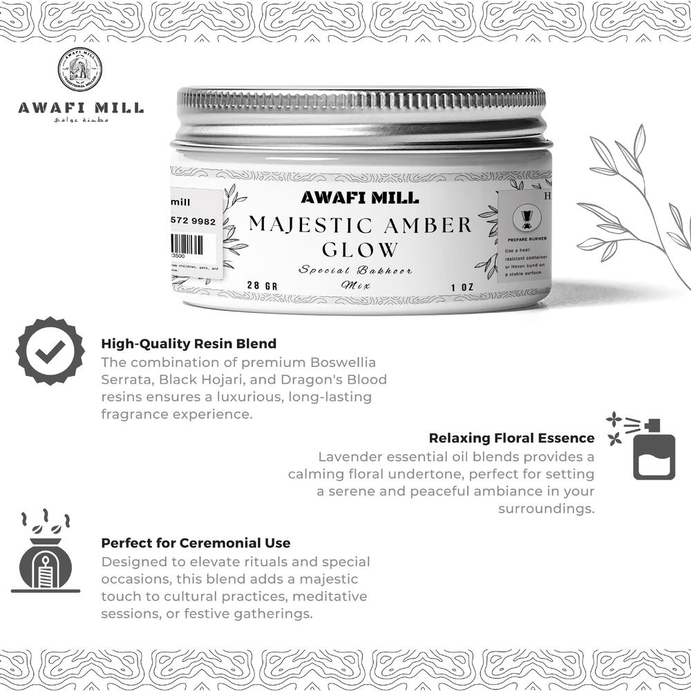 AWAFI MILL Микс бахура «Величественное янтарное сияние» — специально созданные благовония для успокаивающего и духовного аромата — флакон 170 г