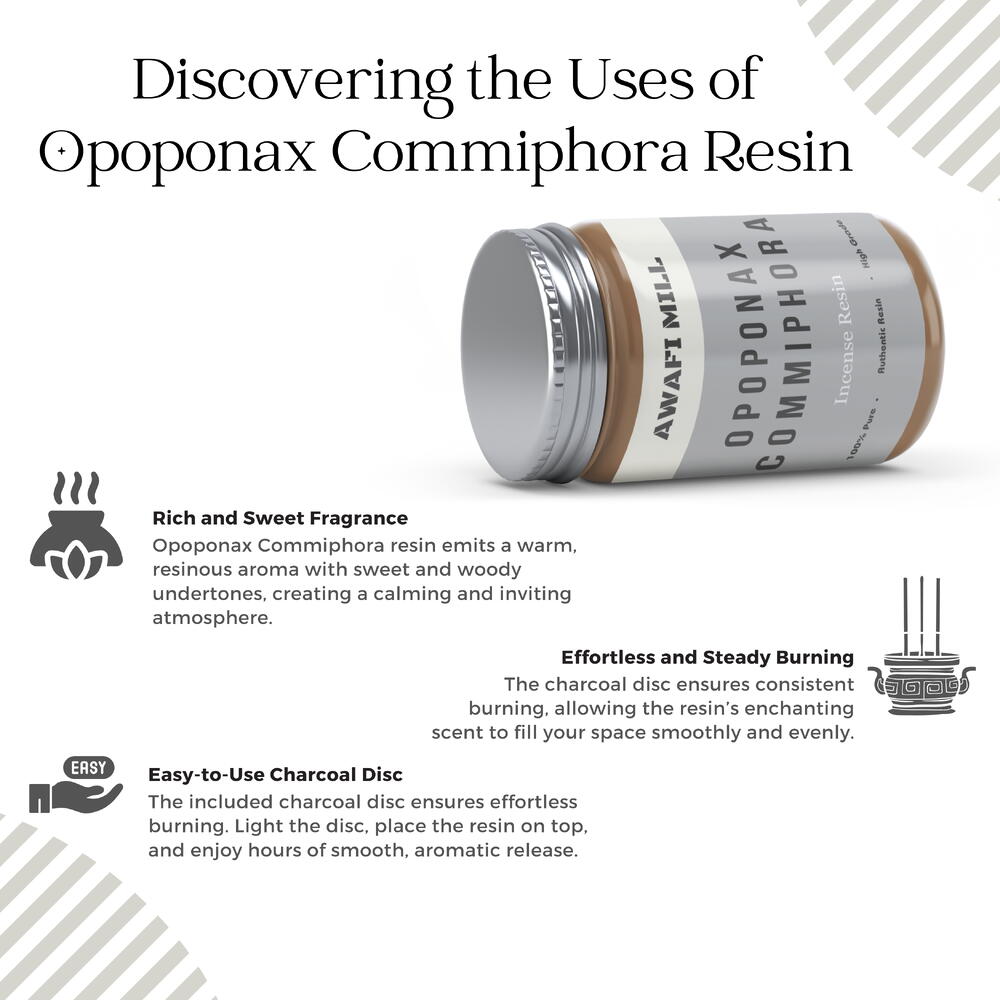 AWAFI MILL Ладан из смолы опопонакса | Треугольные угольные таблетки - Флакон 100 г с 20 угольными таблетками
