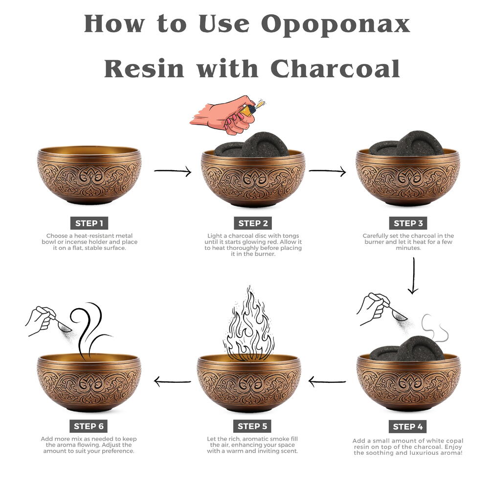 К каждой упаковке прилагается бесплатная таблетка древесного угля Благовония из смолы опопонакса, тщательно отобранные благодаря своему высочайшему качеству Не содержит добавок и синтетических ингредиентов, обеспечивая насыщенный аромат Смола опопонакса создает атмосферу спокойствия и релаксации