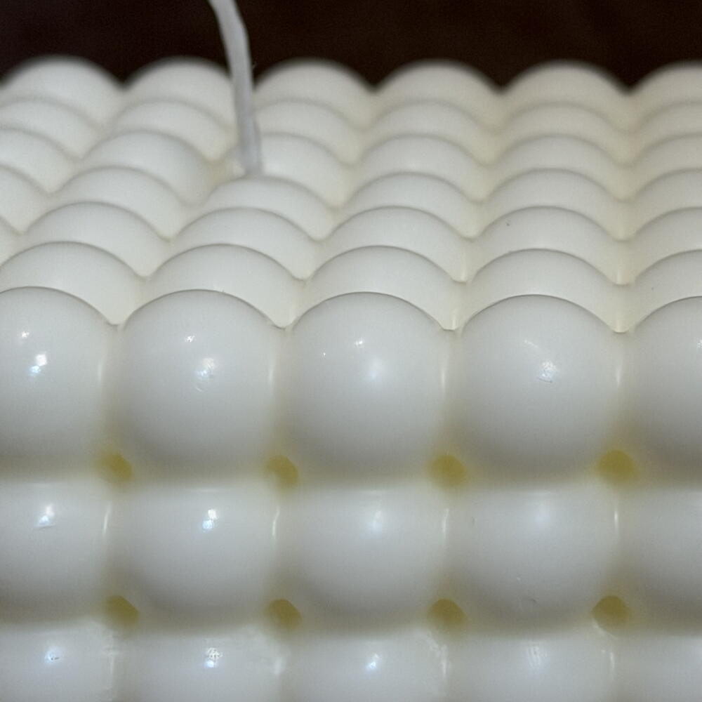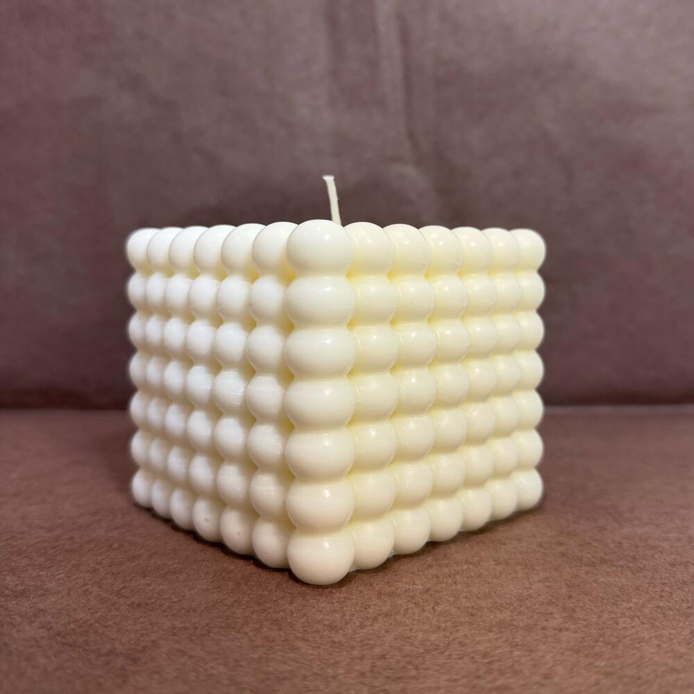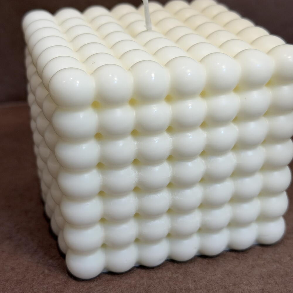 Bring a touch of modern minimalism to your home with our signature Bubble Cube Candle. Its unique geometric design and creamy white finish make it more than just a candle—its a piece of art.
