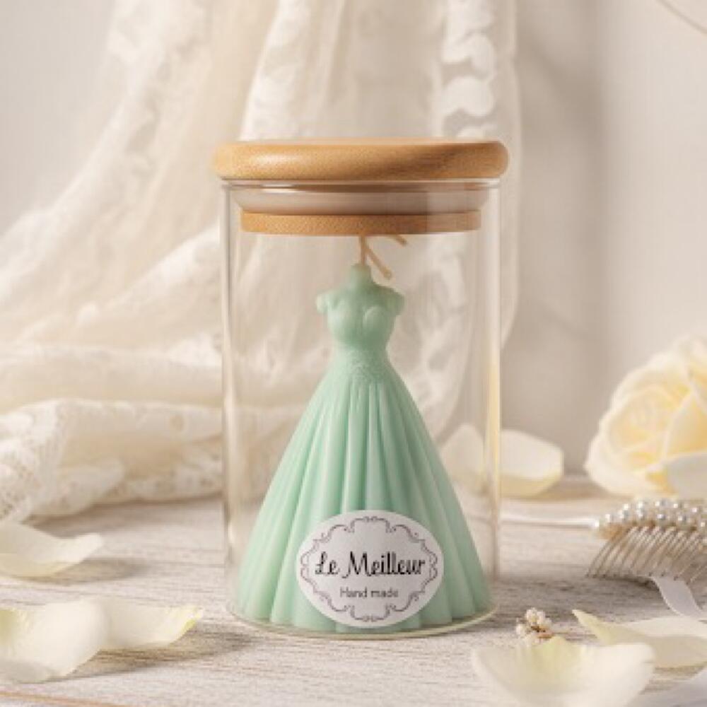 Свеча в банке в форме свадебного платья - аромат карамельного яблока