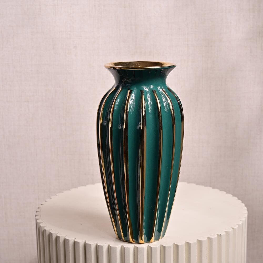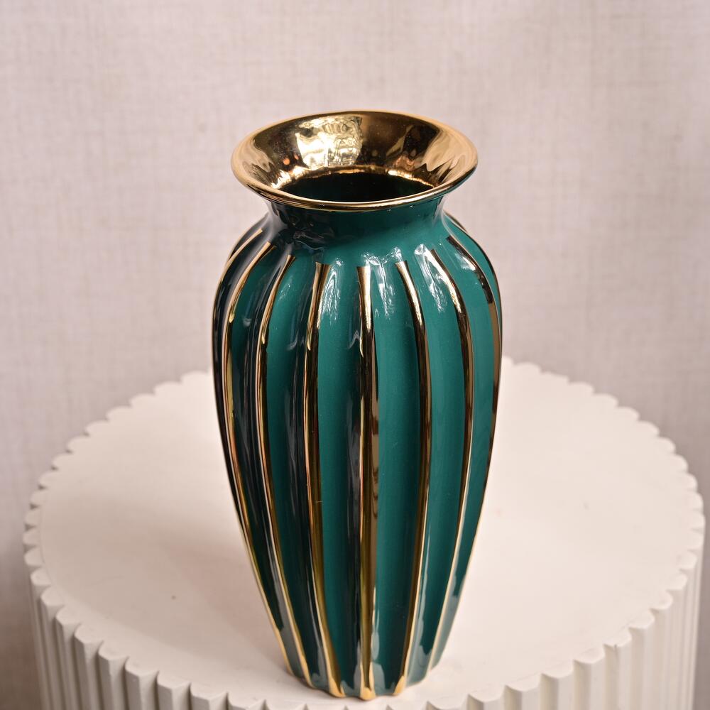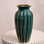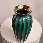 Зелёная и золотая полосатая керамическая ваза 6813