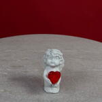 Это изящное изделие тщательно выполнено из гладкой керамики и изображает спокойного ангела с элегантно сформированными крыльями и струящимся платьем. Ангел нежно держит небольшое ярко-красное сердечко — радостный символ рождественского тепла, преданности и сострадания.