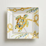 Изысканный квадратный фарфоровый поднос, вдохновлённый Портофино, одной из самых знаковых жемчужин Средиземноморья и символом роскоши, утончённости и прибрежной элегантности. Дизайн воспевает красоту моря через сложные декоративные элементы, где драгоценные камни, жемчуг и золотые орнаменты переплетаются и превращаются в морские мотивы. Формы кораллов, нежные ракушки и детали, навеянные океаном, создают изысканную композицию, воплощающую очарование средиземноморской прибрежной жизни. Сверкающие золотые акценты и драгоценные оттенки придают изделию роскошный и художественный характер. Выполненный из высококачественного фарфора, поднос сочетает элегантность с повседневной функциональностью. Идеально подходит для хранения украшений, ключей или мелких аксессуаров, а также служит декоративным акцентом, привнося в любой интерьер нотку прибрежного гламура. Чтобы сохранить его красоту, аккуратно очищайте мягкой тканью или мягким мылом и избегайте абразивных средств.