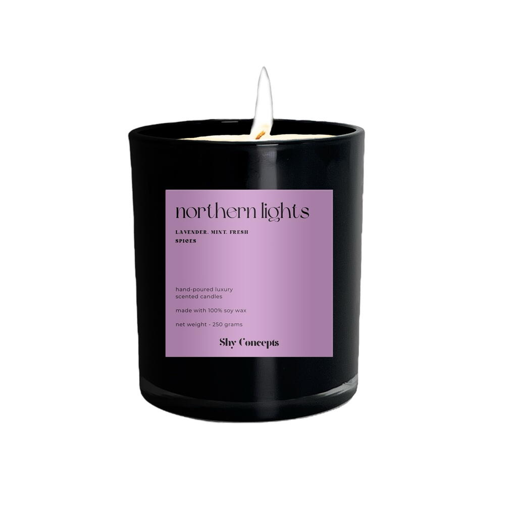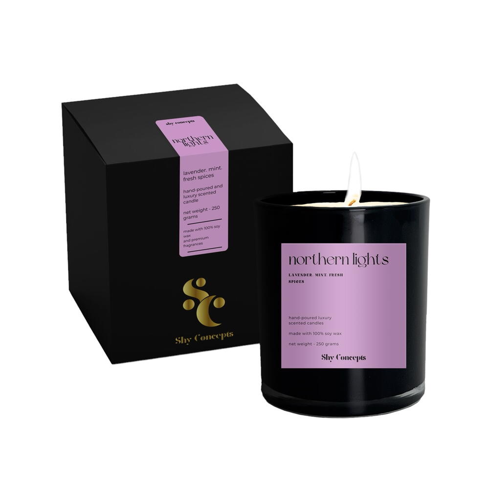 Северное сияние - роскошная ароматическая свеча (чёрная)