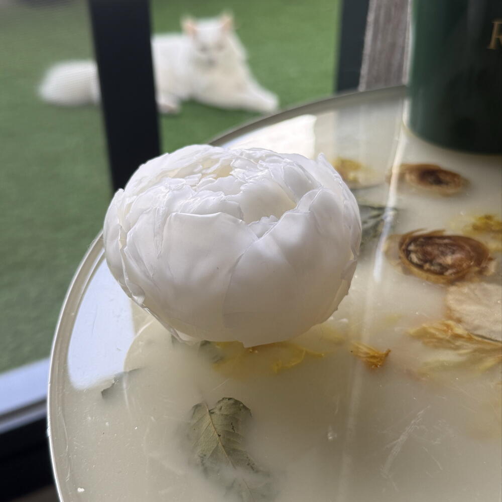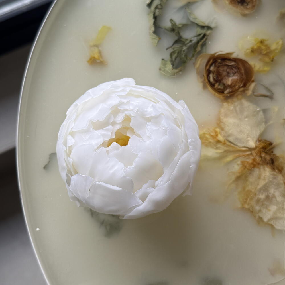 Peony candle sculpted entirely from natural beeswax. Each petal is shaped by hand This is not just a candle — it’s a floral wax sculpture. ✔ 100% natural beeswax ✔ delicate honey aroma ✔ warm golden flame ✔ handcrafted petal by petal ✔ premium gift option Perfect for: • wedding gifts • elegant home decor • romantic surprise • luxury floral lovers Burning time: around 15 h Comes with beige gift box. Handmade in the UAE by RENÉA atelier.