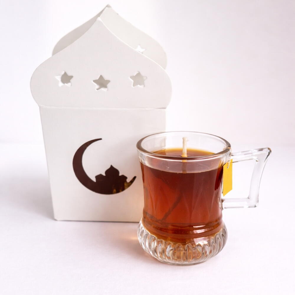 Наша чайная свеча-фонарь для Рамадана вдохновлена традиционными исламскими фонарями и теплом общих вечеров в священный месяц Рамадан. Выполненная в виде свеженалитой чашки чая, эта свеча сочетает в себе продуманный дизайн и уютную, ностальгическую атмосферу — идеально подходит для вечеров Рамадана и подарков на Ид. Размещенная рядом с минималистичным белым фонарем с деталями в виде полумесяца и звезд, эта свеча добавит мягкого свечения в молитвенные уголки, столы для ифтара и домашний декор. Это прекрасное напоминание о простоте, размышлении и единении. Независимо от того, дарите ли вы ее близким или украшаете свой дом к Рамадану, эта свеча станет значимым и элегантным выбором. Идеально подходит для: • Подарков на Рамадан и Ид • Исламского домашнего декора • Украшения стола для ифтара • Вдумчивых духовных подарков Каждая свеча, изготовленная вручную с любовью, призвана быть одновременно декоративной и запоминающейся — памятным сувениром.