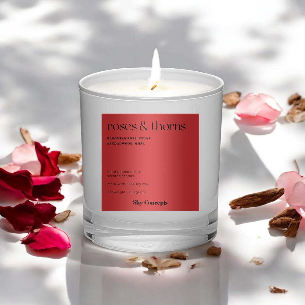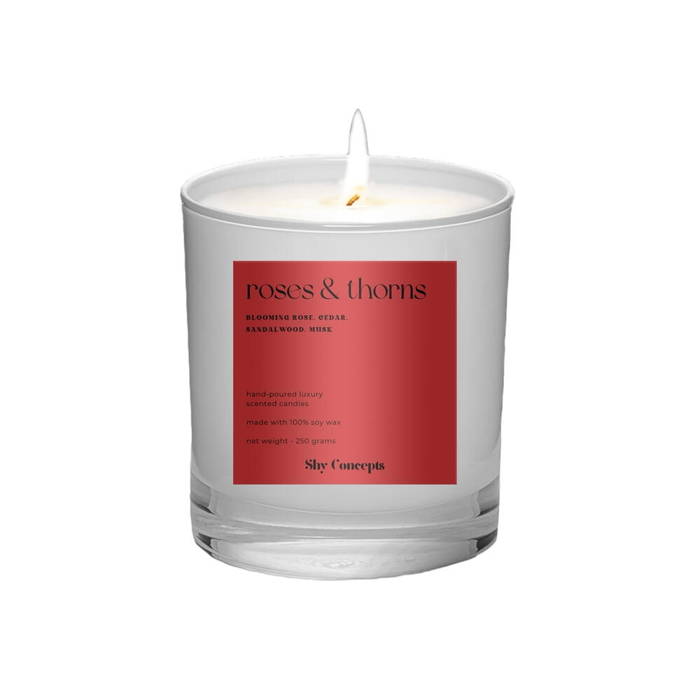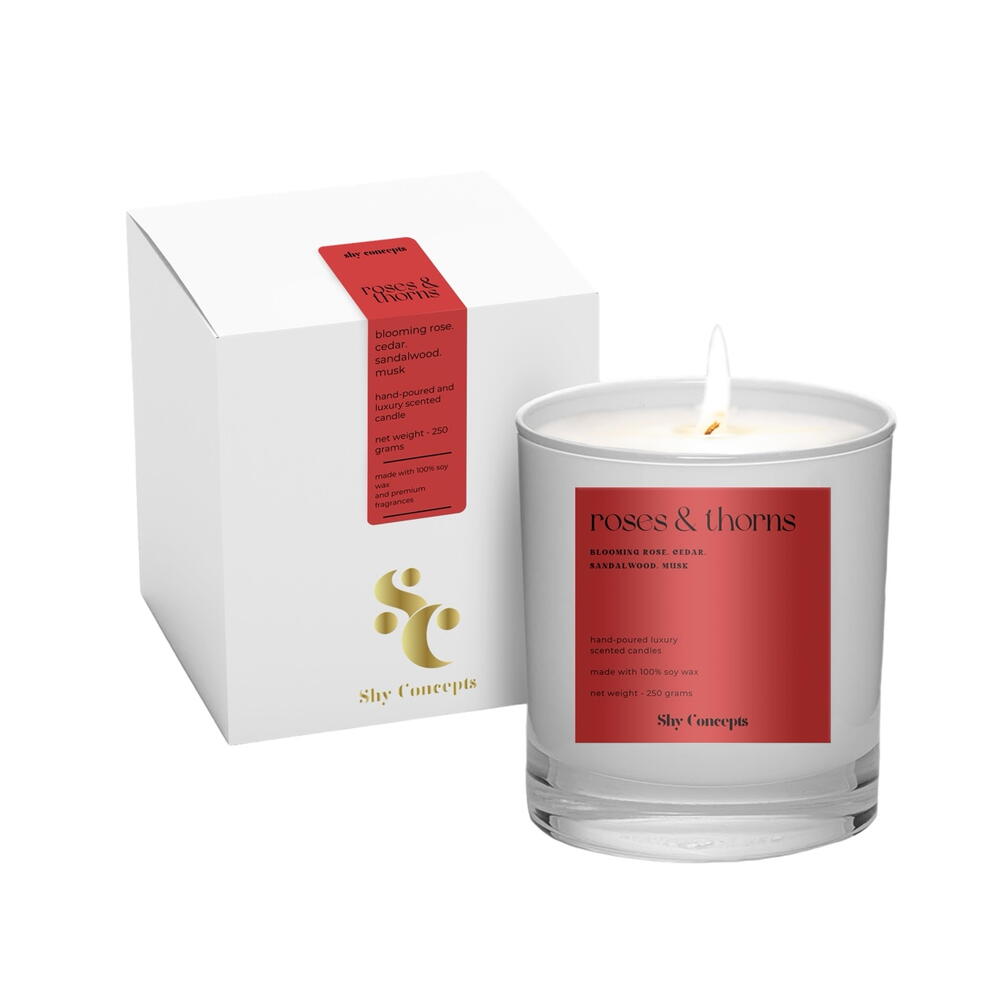 Верхняя нота аромата: свежесрезанные розы, цветочный букет Средняя нота аромата: амбра, гвоздика, сандаловое дерево Базовая нота аромата: сухие древесные ноты, кедр, мускус. Начните свой день правильно или расслабьтесь вечером с «Розы и Шипы», нашей роскошной свечой из соевого воска. Наполненная цветущей розой, кедром, сандалом и мускусом, она идеально подходит для любого ритуала ухода за собой. Представьте, что просыпаетесь под свежий аромат роз и кедра или расслабляетесь вечером под успокаивающие ноты сандалового дерева и мускуса. Доступна в стильных черных или элегантных белых глянцевых банках, эти премиальные ароматические свечи — необходимое приобретение для заботы о себе и благополучия в ОАЭ. Зажгите «Розы и Шипы» и превратите свои повседневные ритуалы в моменты чистой роскоши. Приобретите сегодня и побалуйте себя лучшим! Премиальный воск и ароматы: Изготовленные из высококачественного органического соевого воска, хлопкового фитиля и отборных ароматов, наши свечи предлагают роскошный и терапевтический опыт с длительностью горения до 35–45 часов. Будь то декоративный элемент или источник ароматического удовольствия, они украшает ваш дом и офис своим премиальным ароматом и чистым горением. Ароматерапия и оздоровление: Наши натуральные ароматизированные свечи из соевого воска идеально подходят для ароматерапии, оздоровления, снятия стресса и занятий йогой, предлагая освежающий и расслабляющий обонятельный опыт. Используйте их как освежитель воздуха или во время процедур для тела и ванны, чтобы создать успокаивающую и умиротворяющую атмосферу. 100% натуральная свеча из соевого воска с безопасным горением: Ощутите высшее благо для здоровья с нашей 100% натуральной свечой из соевого воска, отлитой вручную. Созданная для чистого горения, эта органическая свеча, безопасная для домашних животных, идеально подойдет для вашей спальни, гостиной, ванной комнаты и даже офиса. Наслаждайтесь терапевтическими преимуществами и спокойствием, зная, что вы используете продукт высочайшего качества и экологичный. Свеча для релаксации и медитации: Усильте свои сеансы релаксации и медитации с нашими премиальными органическими свечами. Успокаивающие ароматы идеально подходят для создания тихой атмосферы в интерьере — в спальне, ванной, гостиной или на вашем саду и террасе. Зажгите нашу роскошную ароматизированную свечу, чтобы расслабиться и найти внутренний покой. Идеально для любого сезона и повода: Эти универсальные свечи подходят для любого сезона и события — от рождественских торжеств до романтических ужинов, дней рождения, годовщин и свадеб. Будь то украшение заднего двора для летней вечеринки или добавление уюта в городское жилое пространство, они удовлетворят любую потребность. Отличная идея для подарка: Наш набор ароматических свечей — прекрасная идея для подарка на любой случай. Идеальны для любителей средств для ванны и ухода за телом, они приносят освежающий и расслабляющий акцент в любое пространство, будь то балкон, двор или дом. Подарите заботу о благополучии с нашими свечами с безопасным горением — идеальный подарок для него и для неё.