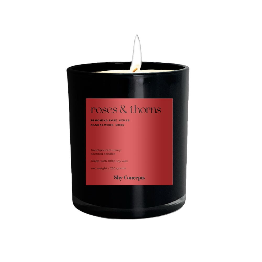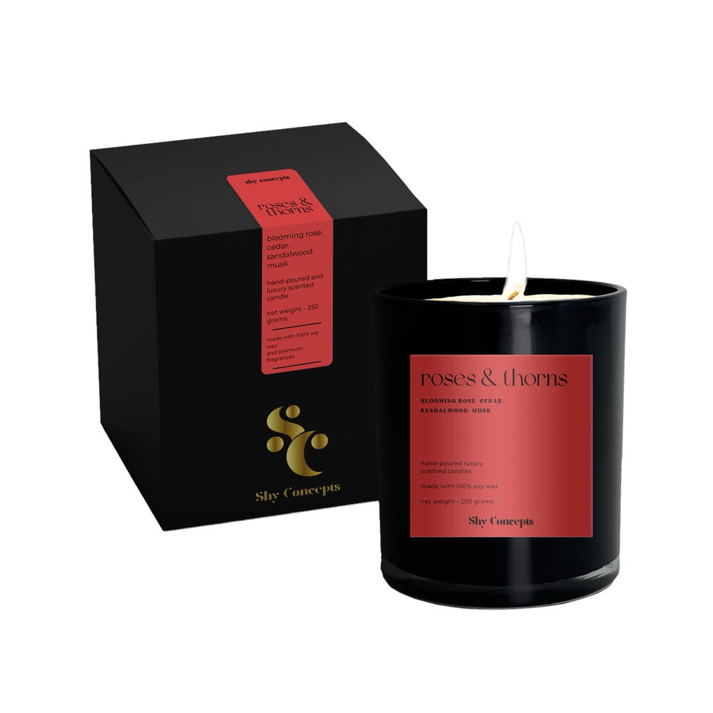 Розы и шипы - роскошная ароматическая свеча ко Дню святого Валентина (чёрная)