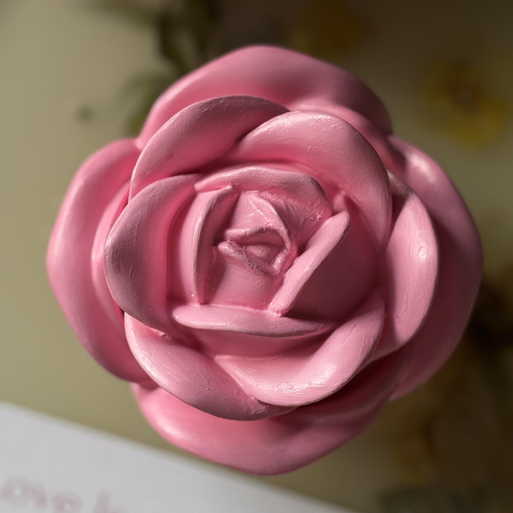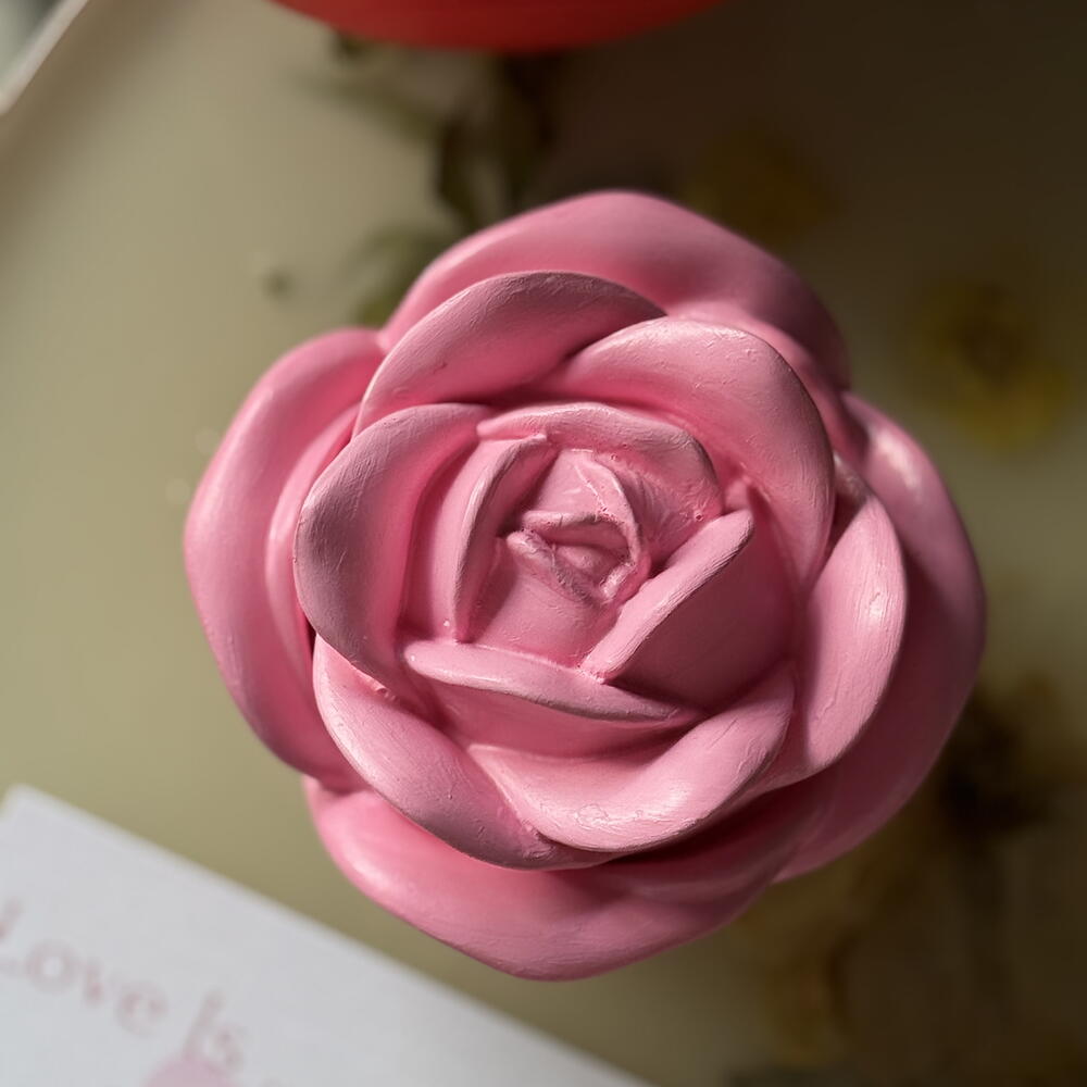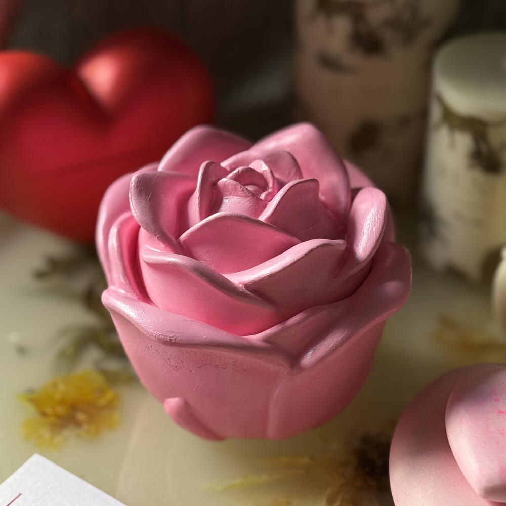 Handcrafted scented candle in an elegant pink rose shape, designed to bring romance and warmth into any space. Each candle is carefully poured and finished by hand, making every piece unique. Perfect as a gift, table décor, or a delicate accent for bedrooms and living areas. A beautiful combination of floral aesthetics and soft fragrance, ideal for special occasions or everyday cozy moments. ✨ Hand-poured 🌹 Realistic rose design 🕯 Damascena rose oud scented 🎁 Perfect for gifts home décor 💗 Romantic and elegant atmosphere Comes in a gift box. PLEASE NOTE: Each candle is individually hand-poured and hand-finished, which means small imperfections, slight color variations, or tiny texture differences may appear.