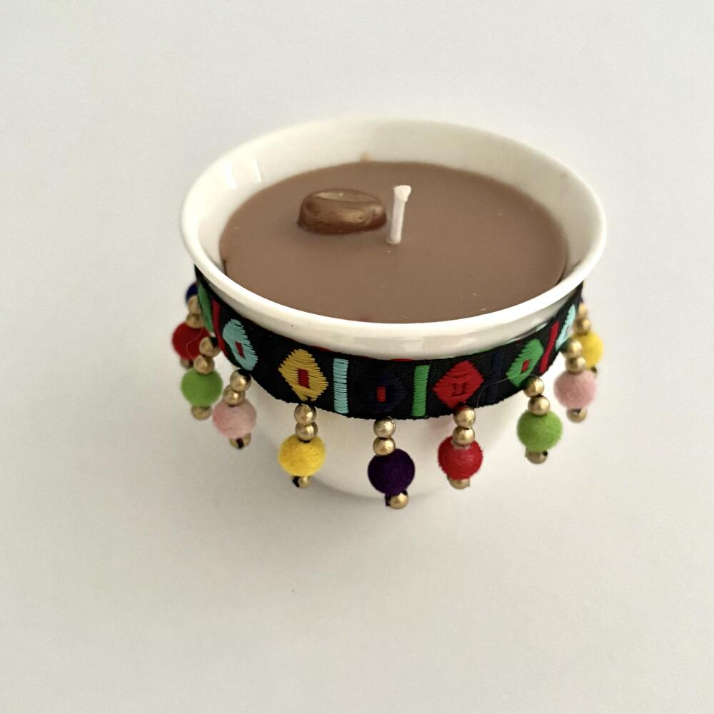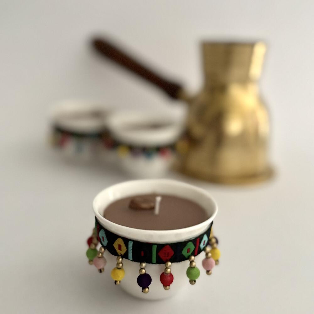 Подчеркните атмосферу Рамадана нашей красиво выполненной свечой ручной работы в арабской кофейной чашке, пропитанной тёплым, успокаивающим ароматом свежесваренного кофе. Оформленная в виде аутентичной арабской кофейной чашки и украшенная традиционной бисерной отделкой, эта свеча привносит в ваш дом нотку культуры и элегантности. Идеально подходит для собраний во время Рамадана, подарков на Ид и корпоративных сувениров; свеча продаётся поштучно, но её также можно заказать оптом для подарков семье, друзьям или коллегам. Будь то создание настроения для сухура и ифтара или поиск уникального подарка к Рамадану, эта свеча — идеальный способ поделиться теплом и гостеприимством.
