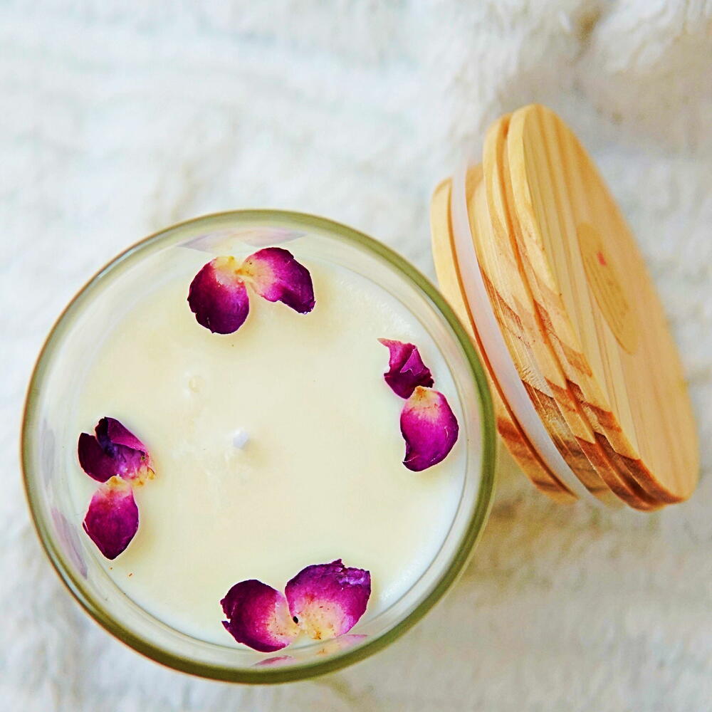 Свечи из соевого воска с ароматом ванили и украшением из сухоцветов.