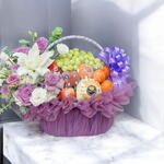 Celebration Crate Фиолетовая корзина с фруктами и цветами