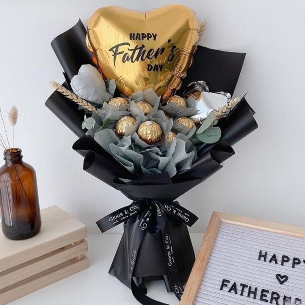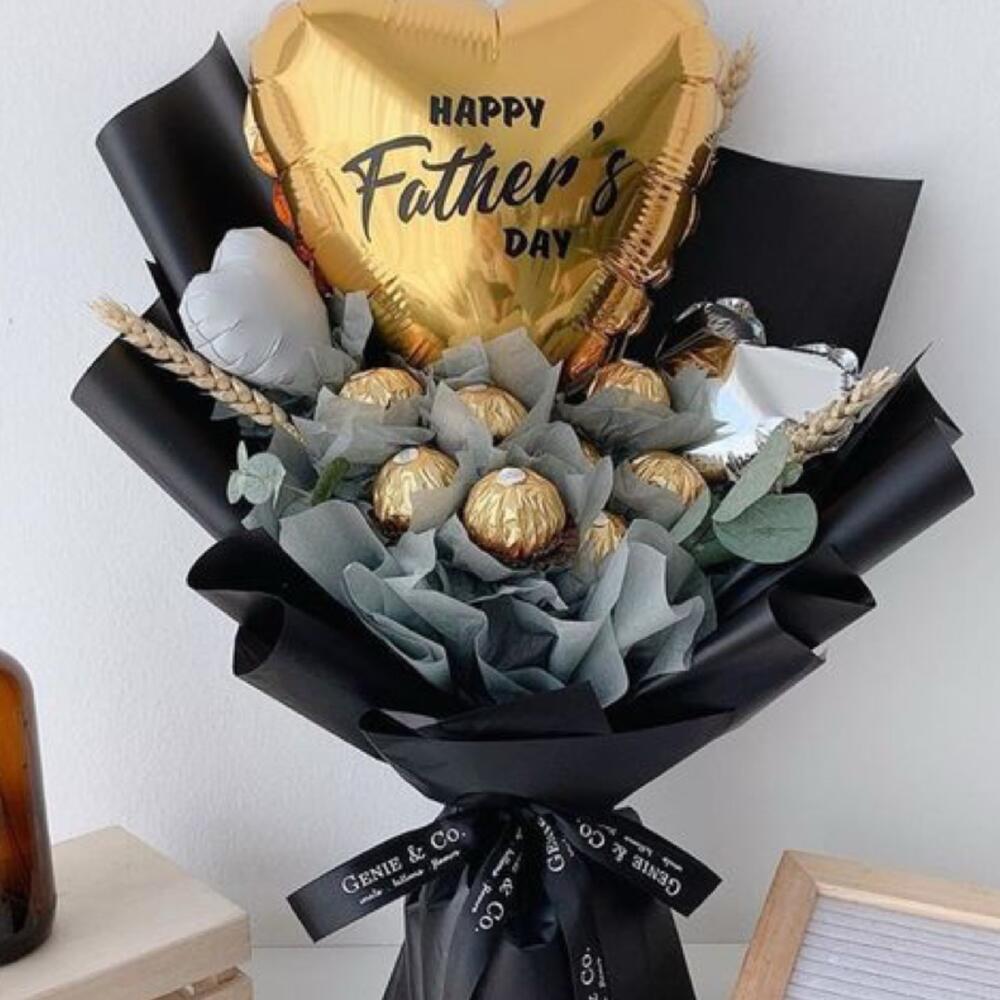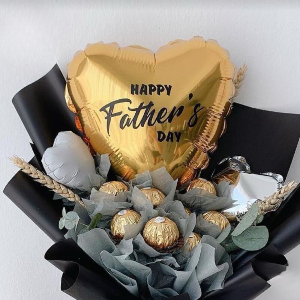 Ferrero rocher - 10 шт. eucalyptus leaves - 5 шт. фольгированный шар в форме золотого сердца - 1 шт. маленький фольгированный шар в форме сердца - 2 шт.
