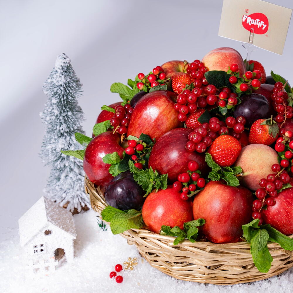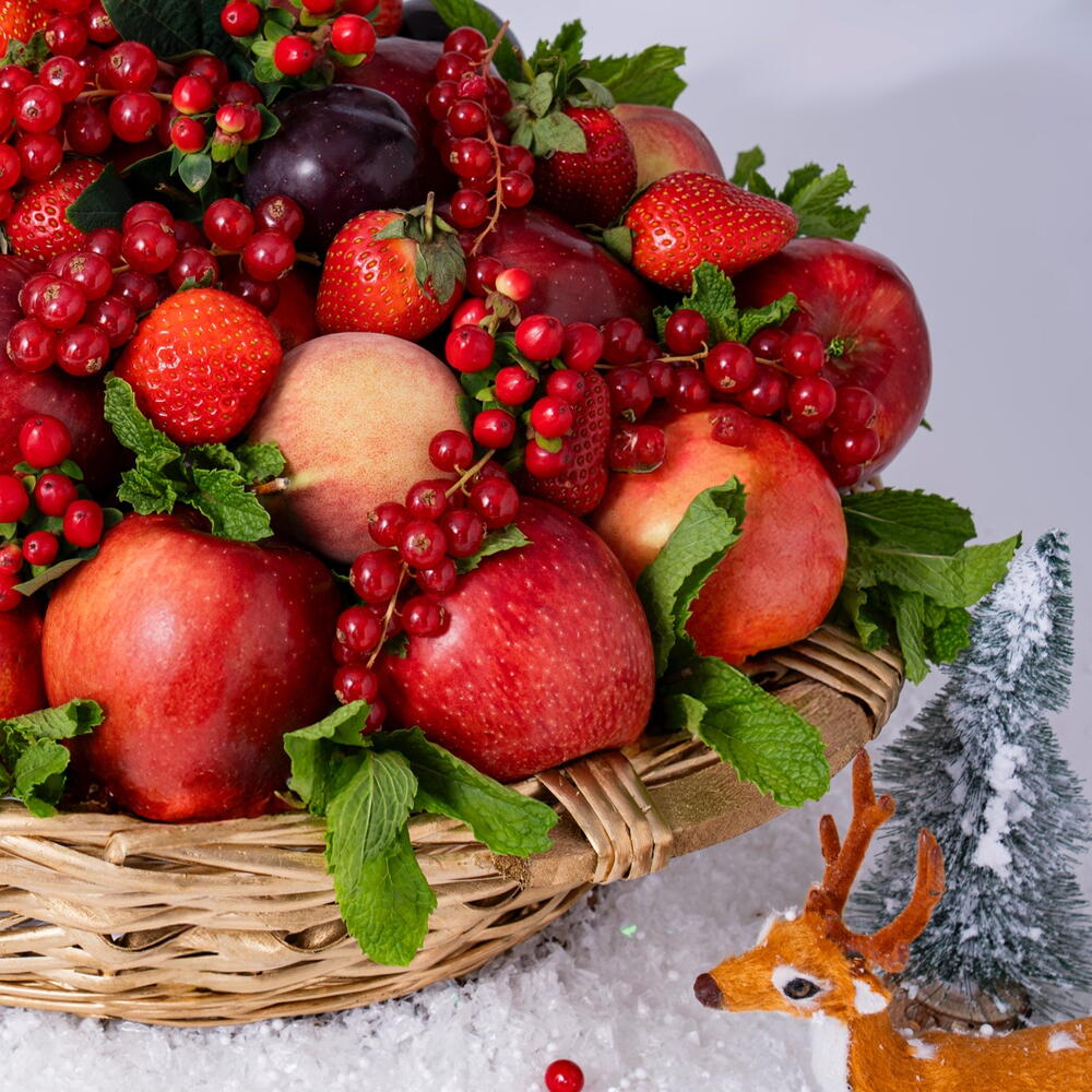 Поднимите дух сезона с нашей потрясающей рождественской корзиной с фруктами — ярким сочетанием праздничного настроения и полезной свежести. Эта красиво оформленная подарочная корзина содержит глянцевые красные яблоки, сочные ягоды и сезонную зелень, аккуратно уложенные в очаровательную плетёную корзину, что делает её роскошным и в то же время искренним подарком. Идеально подходит для семейных встреч, корпоративных подарков или в качестве центрального украшения вашего рождественского стола — эта корзина приносит яркость и свежесть. Насыщенные красные тона перекликаются с классическими оттенками праздника, а всплеск ягод добавляет праздничного блеска. Каждый фрукт отобран вручную, чтобы гарантировать качество, вкус и то особое ощущение свежесобранных плодов.