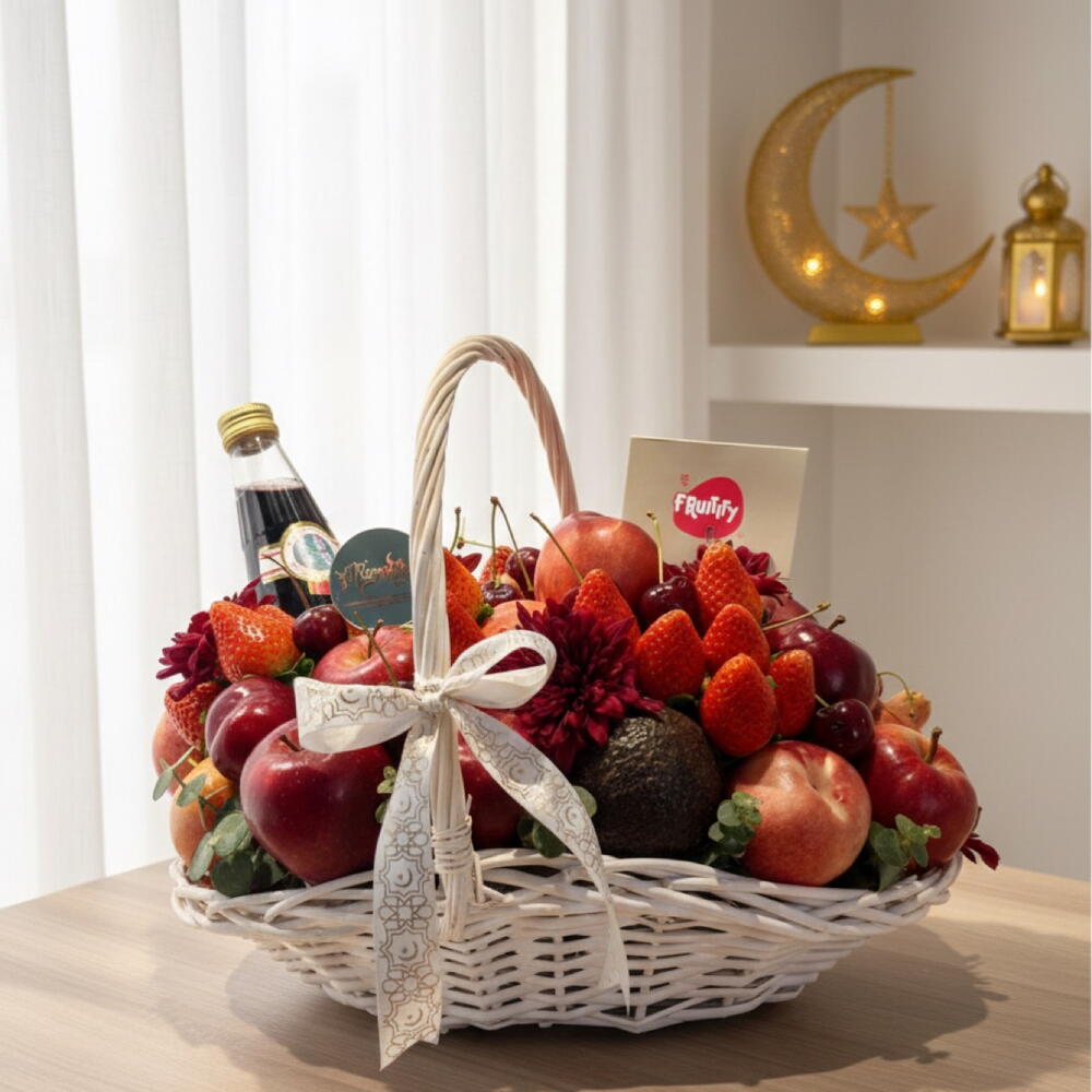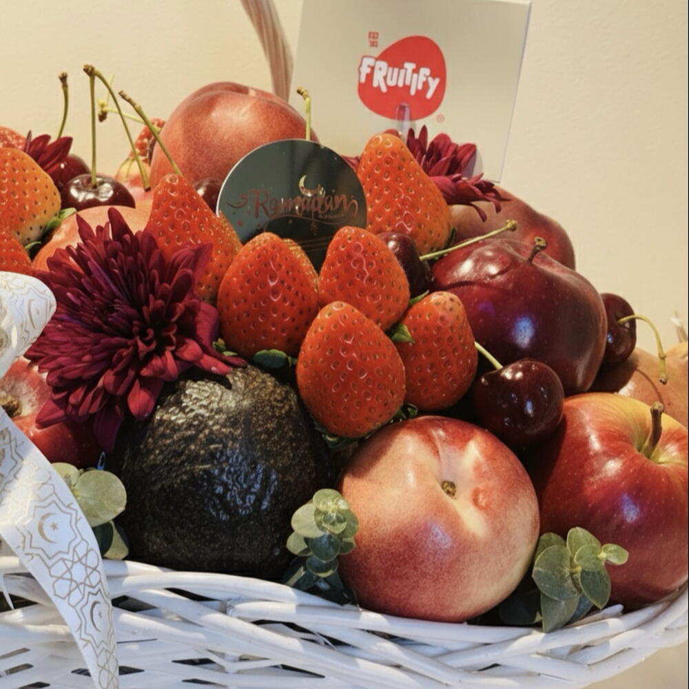 Корзина «Красное наслаждение» — красиво подобранная композиция из свежих, премиальных фруктов, созданная, чтобы впечатлять и радовать. В ней — ярко-красные яблоки, сочная клубника, сладкие вишни, спелые персики, кремовое авокадо и гранат; элегантная композиция дополнена богатыми цветочными акцентами и представлена в классической белой плетёной корзине, завершённой роскошной красной лентой. Идеально подходит для дней рождения, праздников, корпоративных подарков или трогательных сюрпризов, эта корзина предлагает идеальный баланс свежести, цвета и изысканности. Тщательно оформленная и визуально впечатляющая, это подарок, который говорит о заботе, качестве и утончённом вкусе.