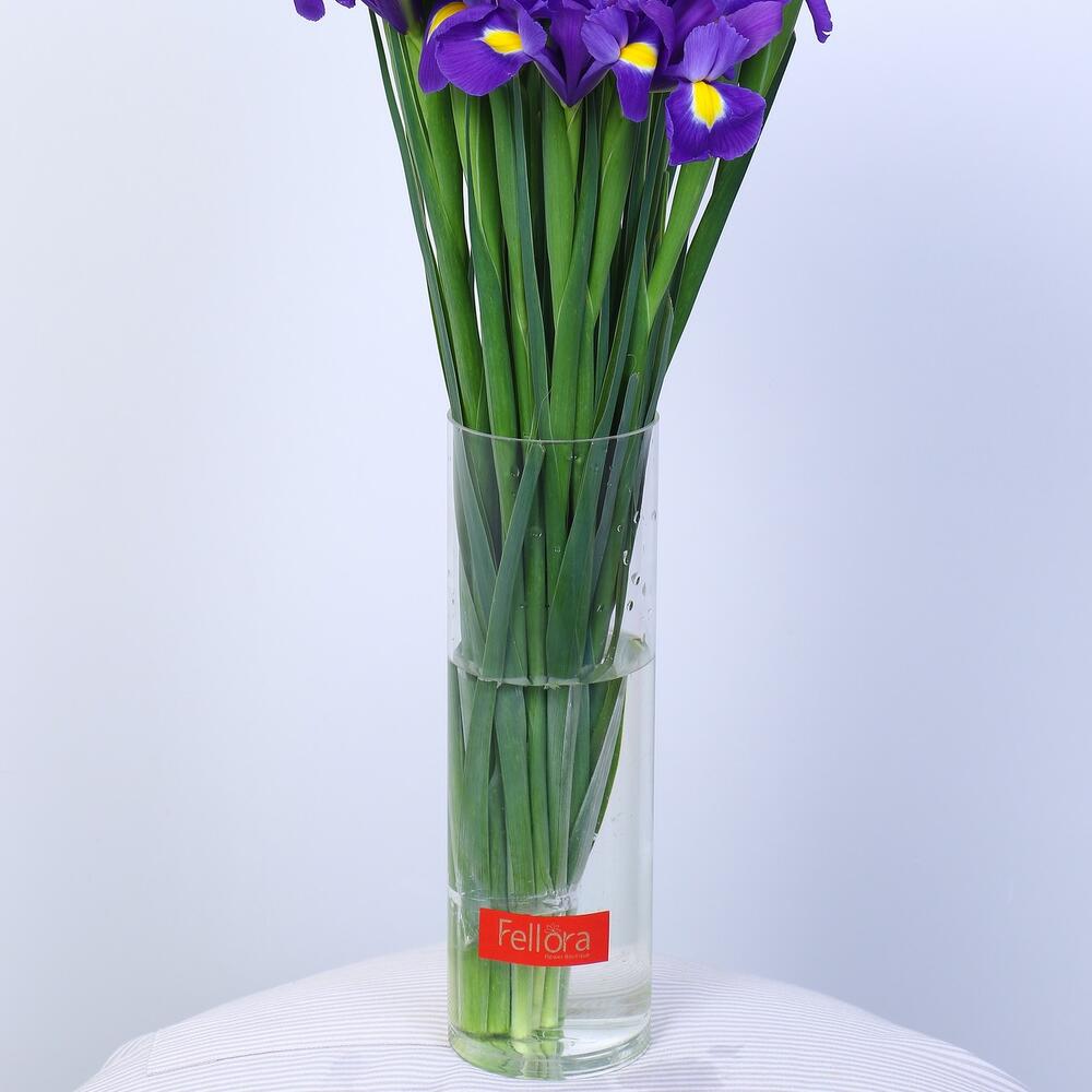 10 стеблей ирисов будут доставлены в цилиндрической вазе высотой 25 см и шириной 8 см. Инструкция по уходу: Подрезайте стебли снизу под углом 45 градусов каждые 3 дня и меняйте воду ежедневно, чтобы цветы оставались свежими. Избегайте попадания прямых солнечных лучей. Наши цветы будут очень свежими, большинство из них будут слегка распустившимися или полураспустившимися. Мы гарантируем, что все цветы будут стоять дольше.