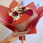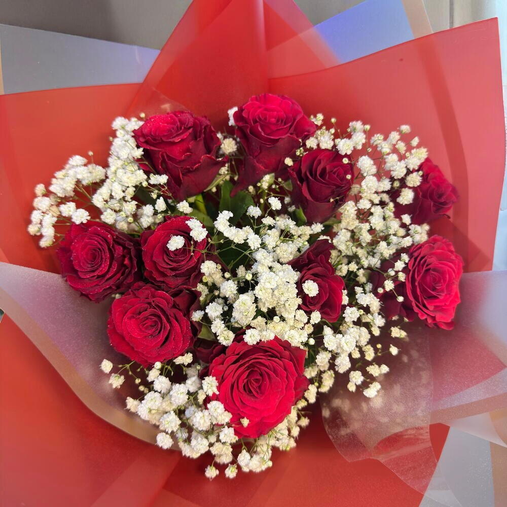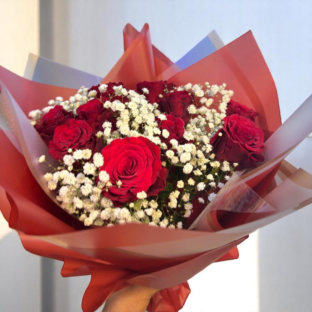 Вневременный и элегантный, букет из 10 красных роз — искреннее выражение любви и страсти. В нём десять премиальных красных роз, расположенных среди нежных белых соцветий гипсофилы; букет красиво упакован в яркую красную бумагу, что делает его идеальным романтическим подарком для годовщин, Дня святого Валентина, дней рождения или спонтанных сюрпризов. Инструкции по уходу: Чтобы букет дольше оставался свежим, обрежьте стебли под углом перед тем, как поставить их в чистую воду. Меняйте воду каждые два дня и держите цветы в прохладном месте, вдали от прямых солнечных лучей и источников тепла. Легко опрыскивайте гипсофилу, чтобы сохранить их нежный вид.