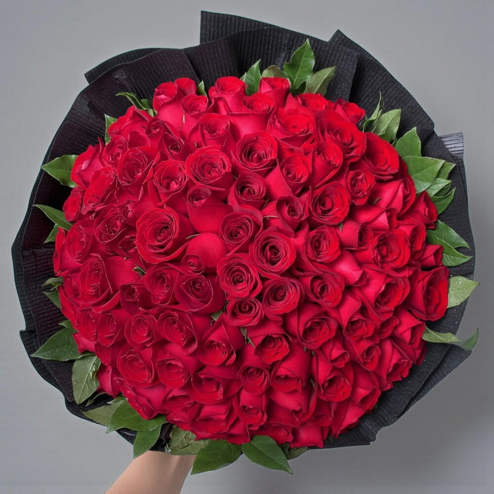 Этот роскошный букет классических красных роз — вечный символ любви, силы и глубоких чувств. Идеально оформленный в пышную округлую форму, он создаёт впечатляющий и элегантный визуальный эффект. Богатые алые лепестки выглядят бархатистыми и изысканными, а свежая зелень добавляет контраста и глубины. Тёмная упаковка подчёркивает интенсивность красных роз, придавая букету смелый, премиальный характер. Эта композиция идеальна для годовщин, романтических признаний и особых торжеств. Чтобы обеспечить максимальную свежесть, сразу после распаковки поместите букет в чистую воду. Меняйте воду ежедневно, подрезайте стебли под углом на 1–2 см, удаляйте листья, находящиеся ниже уровня воды, и держите букет вдали от прямых солнечных лучей, источников тепла, сквозняков и фруктов.