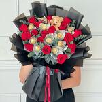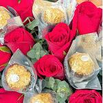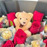 Red rose - 20 шт. Eucalyptus - 20 шт. Teddy bear - 1 шт. Ferero roche - 10 шт.