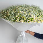 Gypsophila - 50 шт. tanacetum - 104 шт. ribbon satin - 1 шт. wrapping paper - 10 шт.