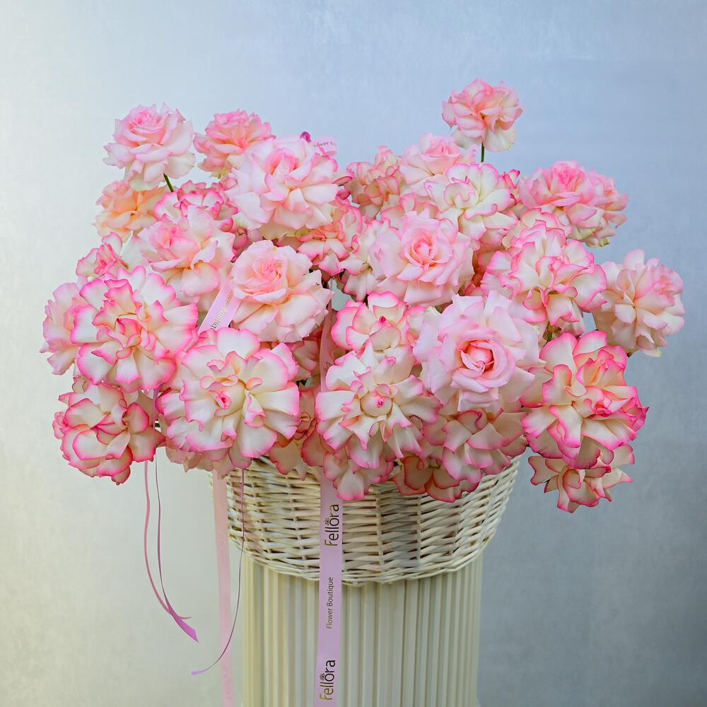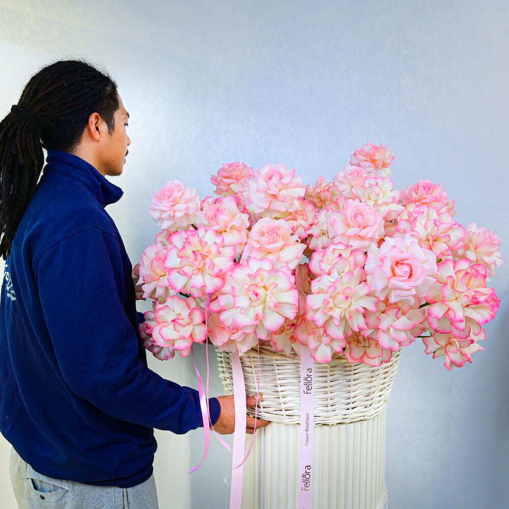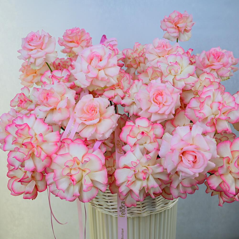 Насладитесь красотой нашей великолепной корзины с 101 розой двух оттенков розового. Эта изысканная композиция представляет собой гармоничное сочетание ярких роз двух оттенков розового, художественно расположенных в красиво выполненной корзине, создавая завораживающую картину, которая идеально подходит для любого случая. Детали продукта: 101 роза двух оттенков розового, элегантно расположенные в декоративной корзине, идеально подходят для свадеб, юбилеев, дней рождения или в качестве искреннего жеста, чтобы выразить любовь и признательность. Очаровательные розовые оттенки символизируют восхищение и благодарность, делая эту корзину с цветами замечательным выбором для выражения ваших чувств. Пышные розы в сочетании с очаровательной корзиной создают потрясающий центральный элемент, который наверняка произведёт впечатление. В Fellora Flower Boutique мы стремимся использовать только самые свежие цветы, чтобы ваша композиция оставалась яркой и красивой в течение нескольких дней. Поделитесь элегантностью и красотой нашей корзины с 101 розой двух оттенков розового с кем-то особенным или побалуйте себя роскошным цветочным наслаждением!