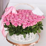 Корзина на День матери с 101 длинным нежно-розовым стеблем