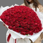 Красные розы — классика, любимая всеми. Они олицетворяют элегантность и простоту, роскошь и изысканность. Букет из этих цветов не требует дополнительных деталей; он прекрасен сам по себе. А если это огромный букет из 101 потрясающей красной розы, он не просто порадует получателя, но и удивит и восхитит его своей красотой! Живые цветы аккуратно собраны нашими флористами в роскошный букет и упакованы в белую бумагу, которая подчеркивает яркую красоту этой композиции. С таким букетом вы легко удивите даже самую взыскательную женщину! Попробуйте, и вы обязательно покорите ее сердце!