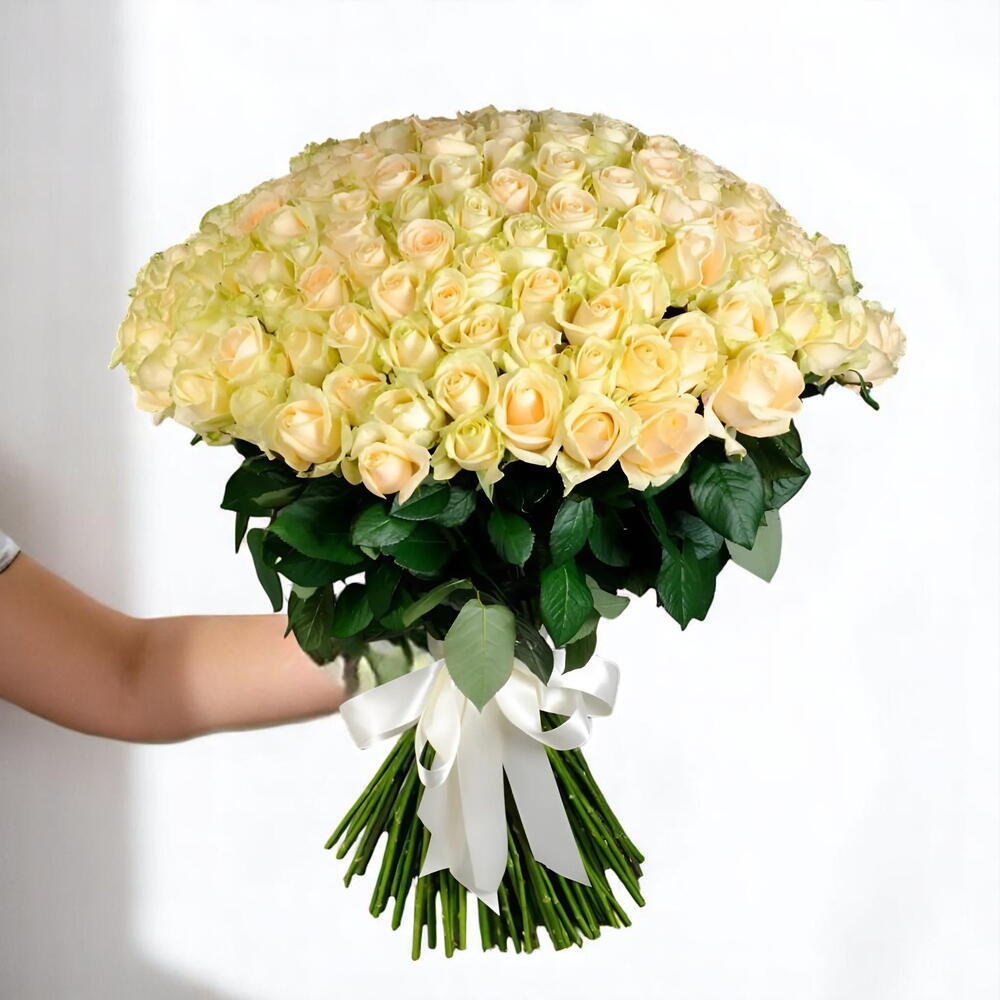 Произведите неизгладимое впечатление с нашим роскошным букетом из 101 персиковой розы – захватывающим дух воплощением нежной элегантности и непреходящего очарования. Каждая роза обладает нежным персиковым оттенком, символизирующим благодарность, искренность и восхищение. Этот букет ручной работы идеально подходит для свадеб, юбилеев и других трогательных моментов. Он украшен белой атласной лентой, придающей букету нотку изысканной красоты. Инструкция по уходу: Чтобы букет дольше оставался свежим, обрежьте стебли под углом 45 градусов перед тем, как поставить его в чистую вазу с водой. Храните букет в прохладном, затененном месте, вдали от прямых солнечных лучей и источников тепла. Ежедневно меняйте воду и удаляйте увядшие листья, чтобы продлить его жизнь и красоту.