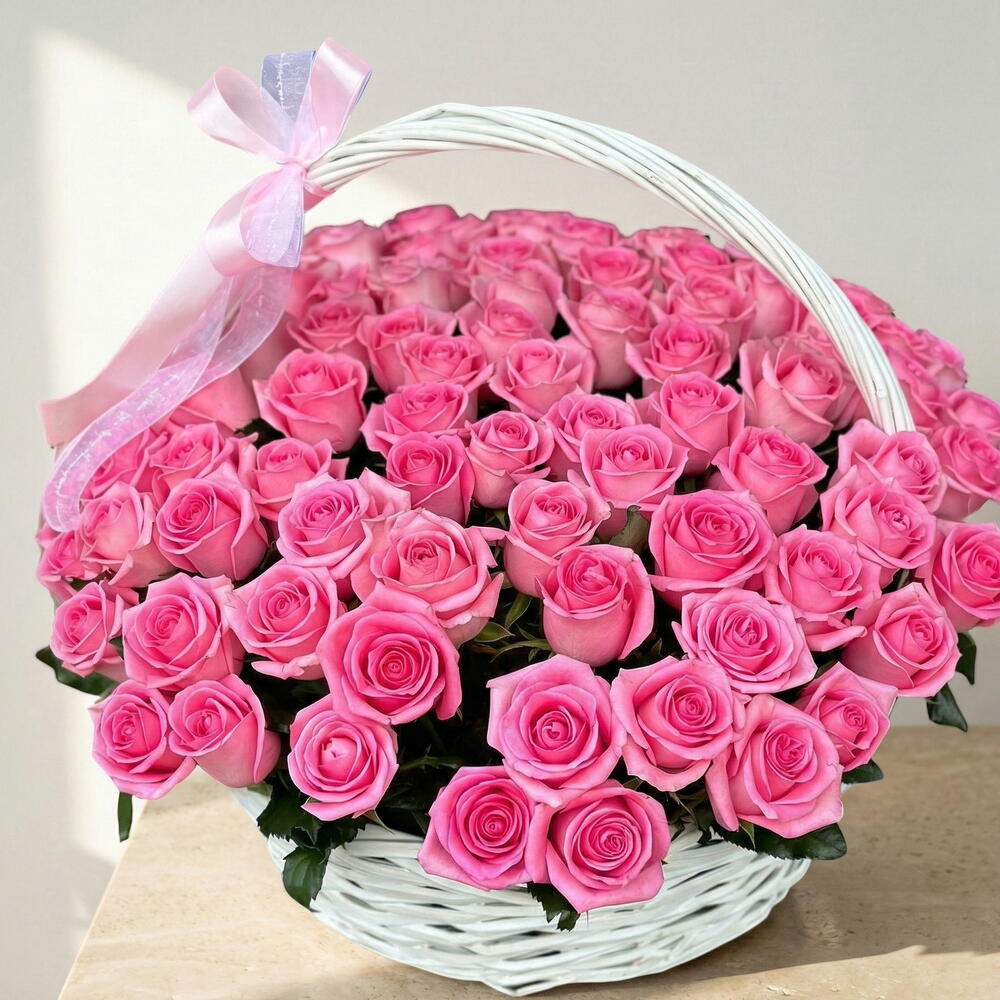 Корзина из 101 роз Pink Revival – роскошная цветочная композиция
