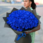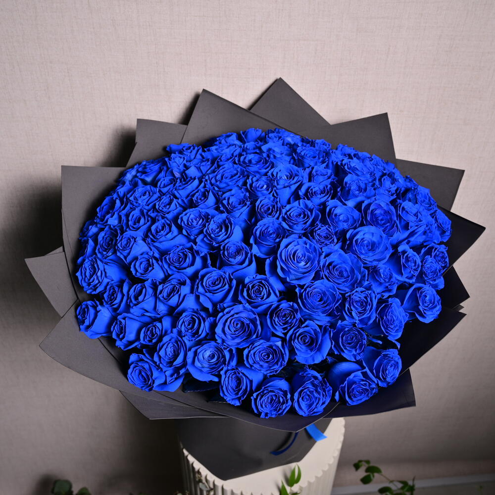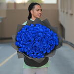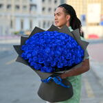 Выразите свою индивидуальность этим потрясающим букетом из 101 розы премиум-класса синего цвета, красиво оформленным в роскошную чёрную упаковочную бумагу. Яркий синий цвет символизирует таинственность и элегантность, делая этот букет идеальным подарком на особые случаи, такие как годовщины, дни рождения или просто в знак восхищения. Эта изысканная и захватывающая цветочная композиция, созданная с заботой и вниманием, оставит неизгладимое впечатление.