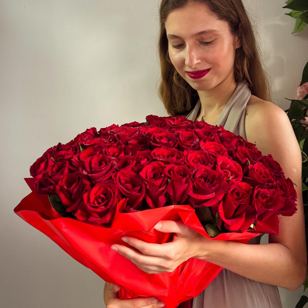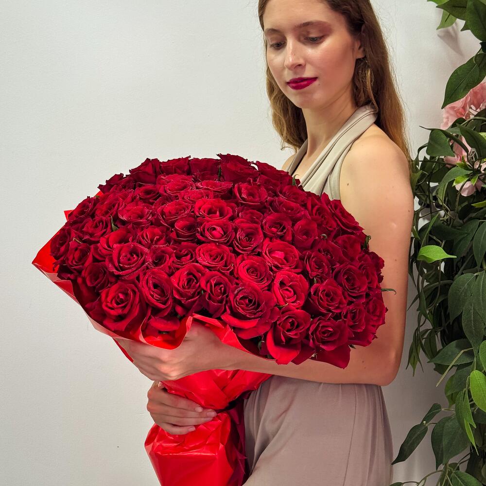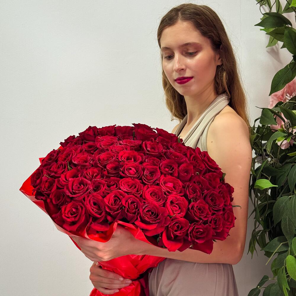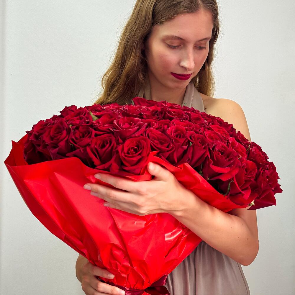 Произведите незабываемое впечатление с этим потрясающим букетом из 101 отборной красной розы, вручную перевязанной и упакованной в элегантную красную бумагу. 101 свежая, бархатистая красная роза – каждый цветок тщательно отобран за яркий цвет и красоту. Стильная красная упаковка создаст смелую, романтичную атмосферу. Профессионально составленная вручную композиция – для максимального эффекта. Эта роскошная композиция, неподвластная времени, символ страсти, любви и преданности, идеально подходит для предложений руки и сердца, годовщин, Дня святого Валентина или любого другого трогательного романтического торжества. Закажите букет «Большая преданность» сегодня и сделайте свою любовь незабываемой с помощью захватывающего дух подарка, который говорит громче слов.