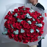 101 красная роза с эвкалиптом-1432