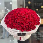 Свежий стильный букет из 101 красной розы.