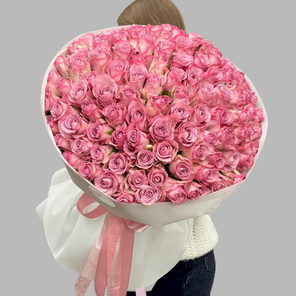Букет из 101 нежно-розовых роз ко Дню святого Валентина