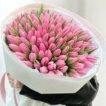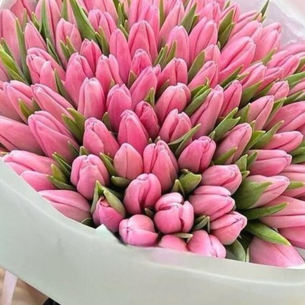This luxurious bouquet of pink tulips is a radiant symbol of tenderness and grace. The vibrant blooms, elegantly arranged in a tight spiral, create a voluminous and harmonious shape that captivates from every angle. Wrapped in crisp white paper and tied with a soft satin ribbon, this bouquet is perfect for celebrating love, admiration, or springtime joy. To ensure the flowers stay fresh, place the stems in clean, cool water immediately upon delivery. Change the water daily, trim the stems slightly every two days, and keep the bouquet away from direct sunlight and drafts to prolong its beauty. The bouquet’s simplicity and uniformity make it a timeless classic for any occasion.