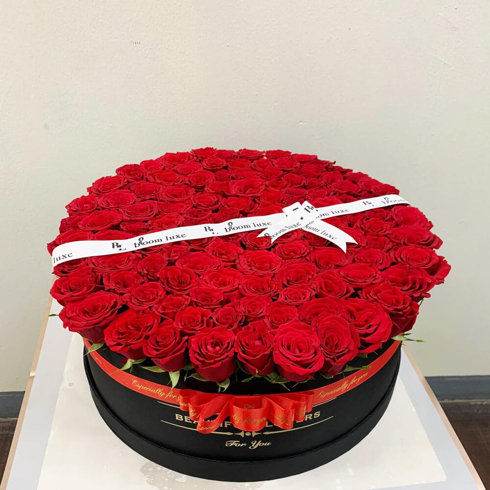 Коробка 111 красных роз