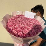 🌸 131 роза сорта Wham Pink Роскошный букет из 131 розы сорта Wham Pink, упакованный в нежную светло-розовую бумагу, создан, чтобы выразить чистую элегантность и нежность. Ищете ли вы красивый подарок для мамы, сладкий сюрприз для друга или романтический букет для кого-то особенного, эта композиция идеально подойдет тем, кто ищет розовые розы премиум-класса в Дубае или роскошный цветочный подарок, который действительно выделяется. 🤍✨