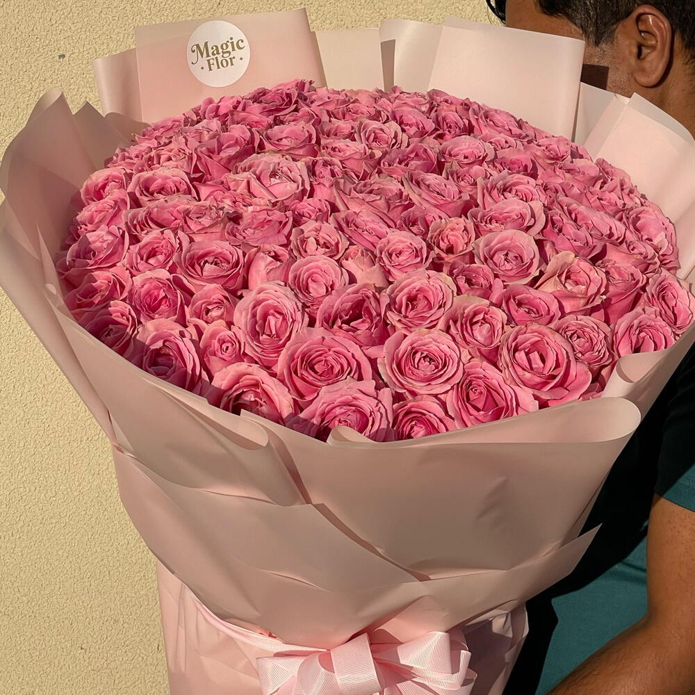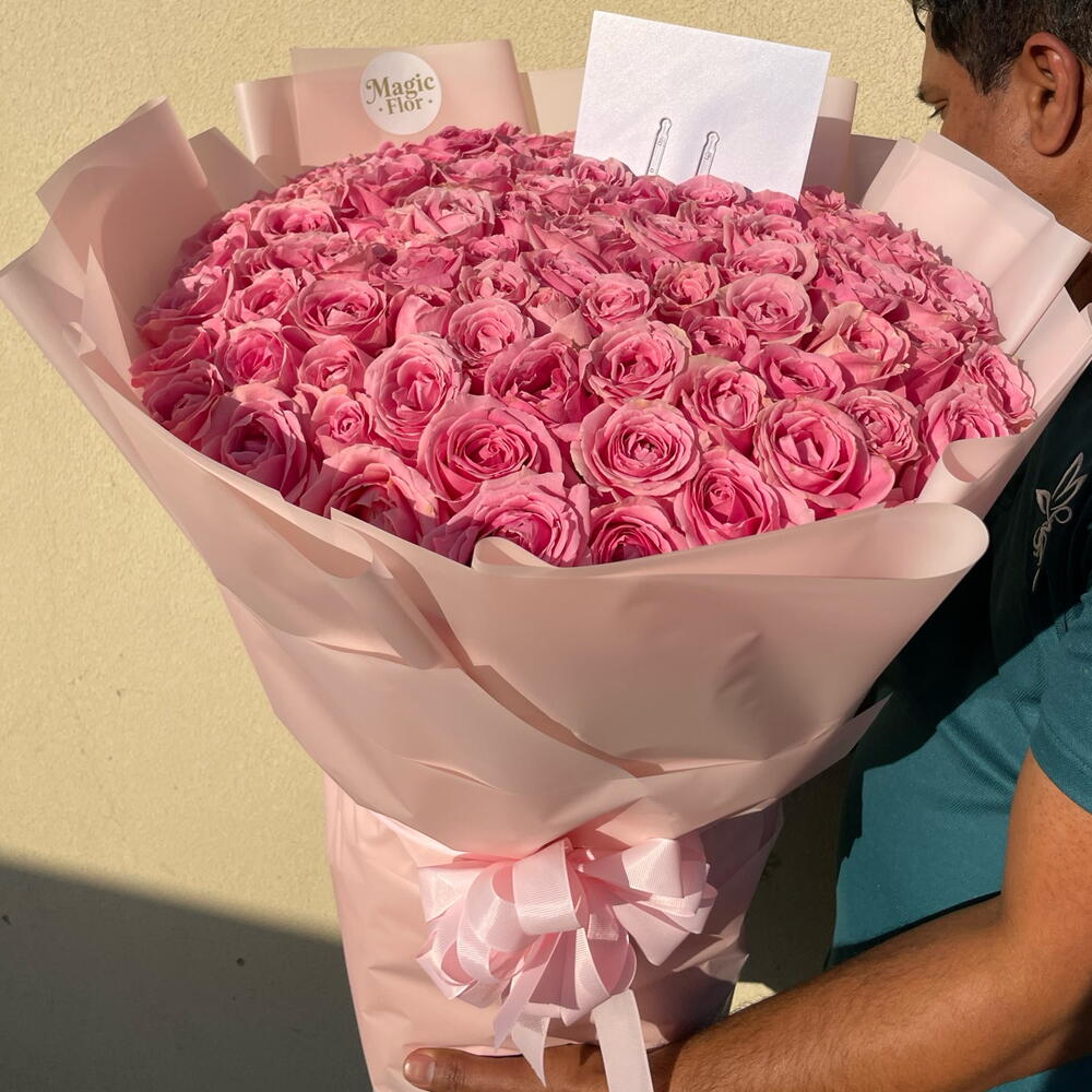 🌸 131 роза сорта Wham Pink Роскошный букет из 131 розы сорта Wham Pink, упакованный в нежную светло-розовую бумагу, создан, чтобы выразить чистую элегантность и нежность. Ищете ли вы красивый подарок для мамы, сладкий сюрприз для друга или романтический букет для кого-то особенного, эта композиция идеально подойдет тем, кто ищет розовые розы премиум-класса в Дубае или роскошный цветочный подарок, который действительно выделяется. 🤍✨