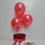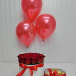 Red rose - 15 шт. Box - 1 шт. красный шарик - 3 шт. коробка Ferrero Rocher 16 шт - 1 шт.