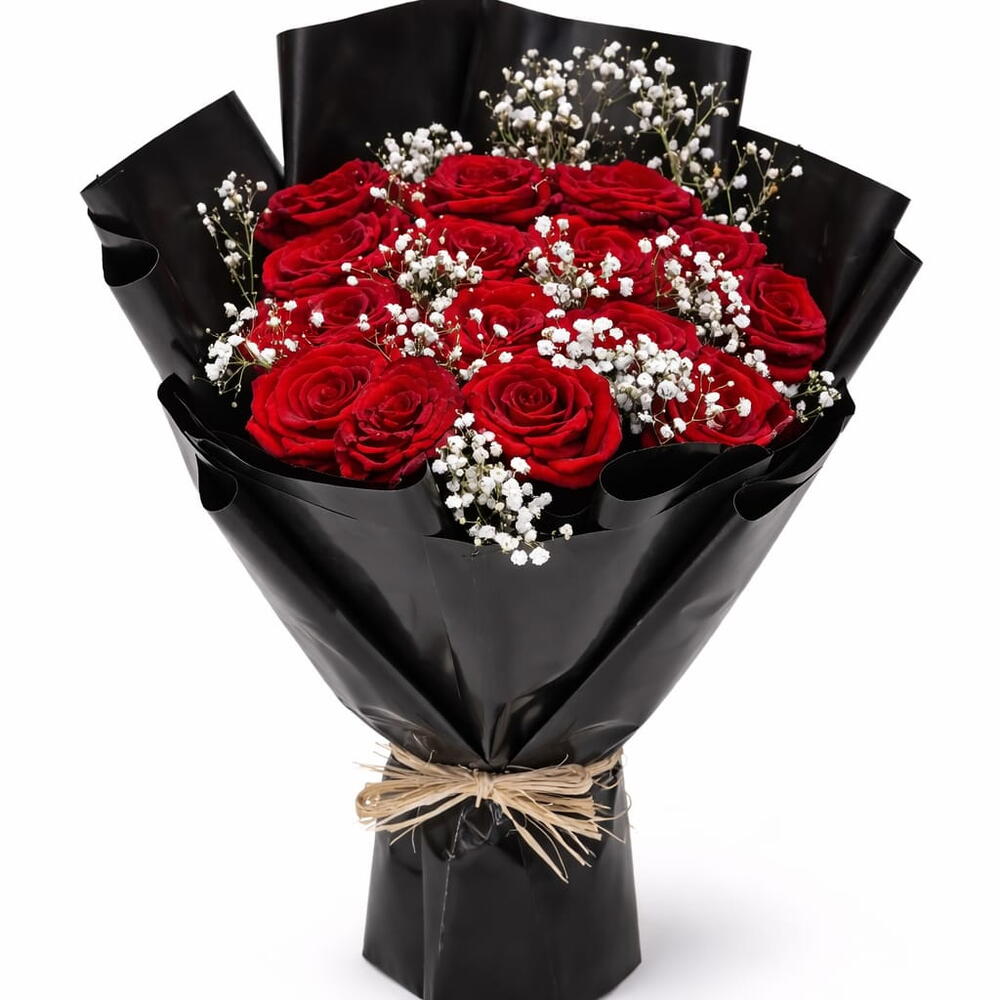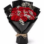 Элегантный букет из 15 свежих красных роз, символизирующих любовь, романтику и изящество, идеально подходит для юбилеев, дней рождения и празднования особенных моментов.