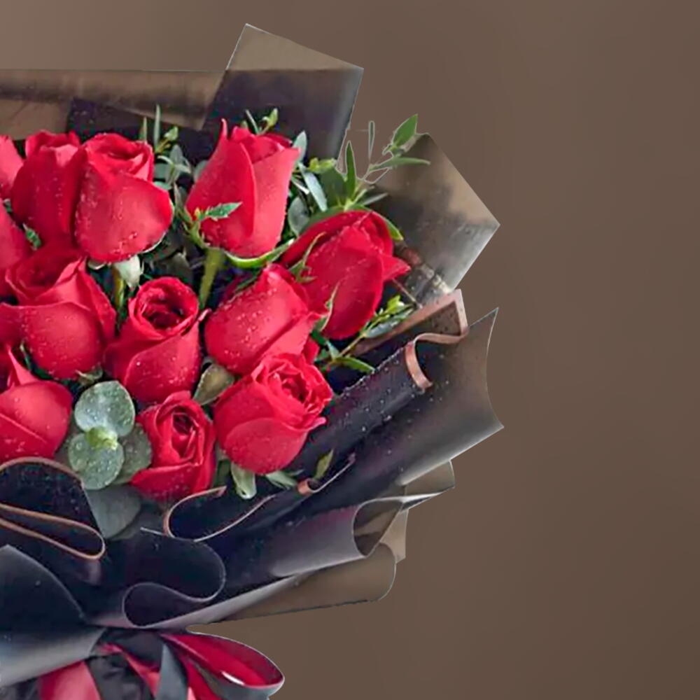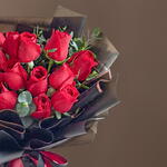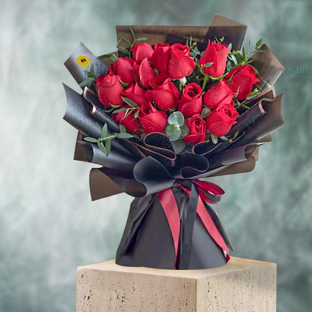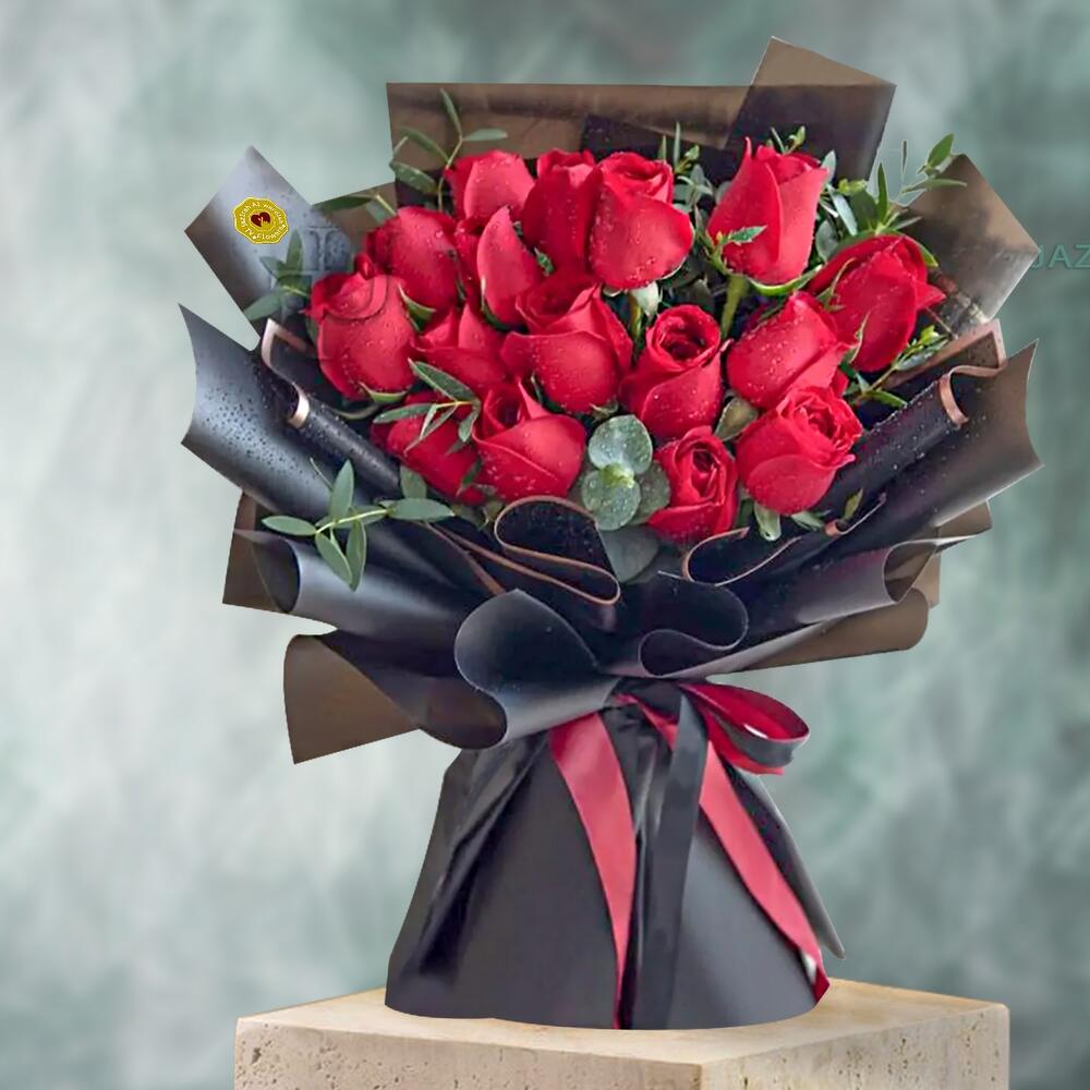 Букет из 15 красных роз в упаковке