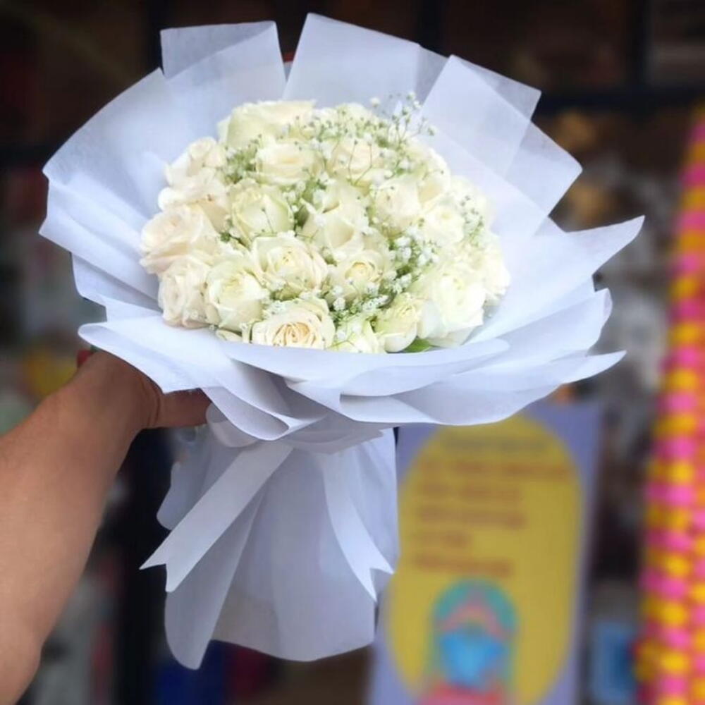 🤍 Букет премиум-класса из 15 белых роз Элегантный. Чистый. Неподвластный времени. Наш букет премиум-класса из 15 белых роз — это изящное воплощение чистоты и утонченности. Этот букет, составленный вручную из 15 отборных белых роз на длинных стеблях, излучает спокойствие и элегантность — идеальный выбор для свадеб, юбилеев, выражения сочувствия или просто для того, чтобы стильно выразить искренние чувства. Каждая роза тщательно отбирается по свежести, размеру и красоте, затем искусно украшается пышной зеленой листвой и упаковывается в роскошную бумагу с атласной лентой. В комплекте: 15 белых роз премиум-класса Свежая сезонная зелень Элегантная роскошная упаковка и лента Идеально подходит для: 🌿 Годовщины свадьбы 💌 Выражения соболезнования 🎁 Элегантного подарка на особые случаи Почему вам понравится: ✔ Символ чистоты, изящества и нового начала ✔ Связано вручную опытными флористами ✔ Доставляется свежим и красиво оформленным