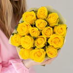 Satin ribbon - 1 шт. дизайн упаковки - 1 шт. желтые розы - 15 шт.