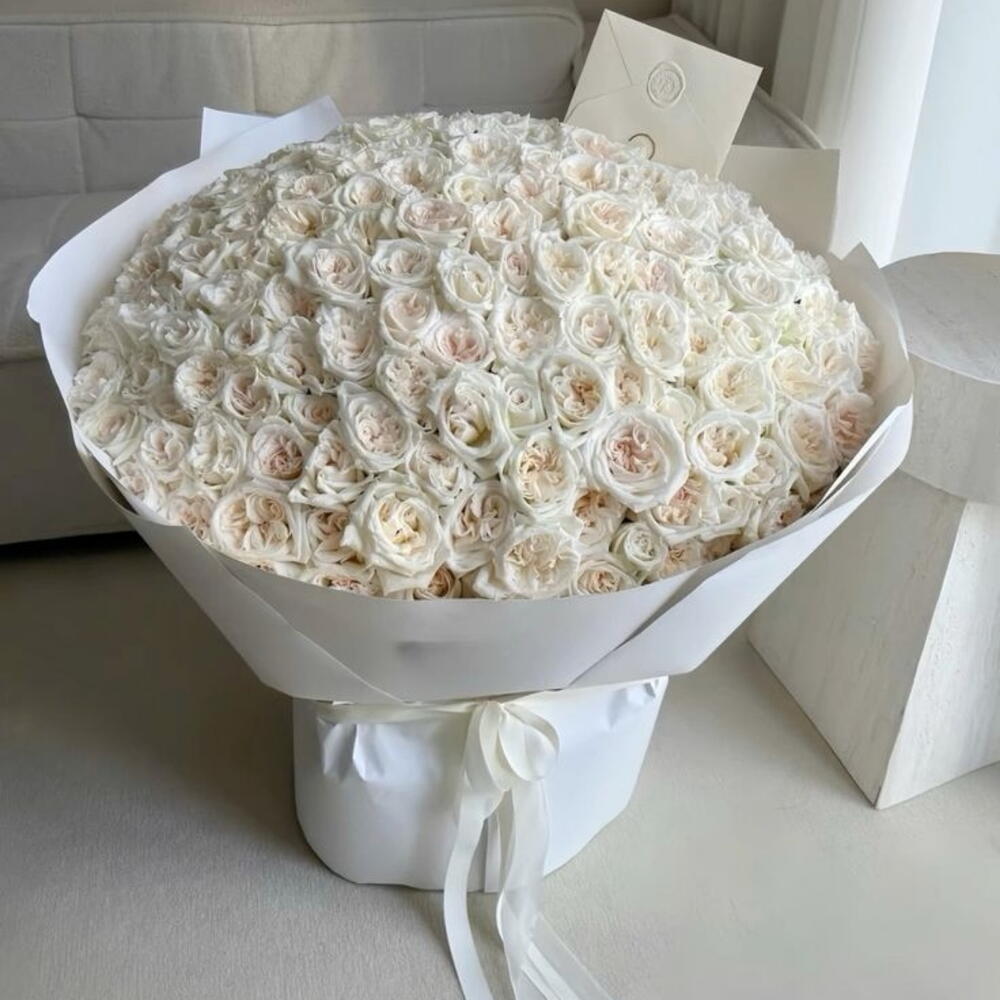 Этот букет из 150 белых роз действительно великолепен — идеальный способ выразить неизменное уважение и преданность. Сто пятьдесят потрясающих белых роз искусно расположены, создавая огромный, роскошный купол чистоты и красоты. Это идеальный подарок для важного события в жизни или грандиозного, незабываемого жеста. Ключевые особенности Масштабное заявление: Благодаря 150 белым розам этот букет невероятно роскошен и производит мощное впечатление искренних эмоций. Чистая элегантность: Белые розы символизируют чистоту, почтение и новые начала, что делает их идеальными для свадеб или официальных торжеств. Огромный размер: Щедрые габариты обеспечивают захватывающее и доминирующее присутствие: Ширина: 60 см Высота: 65 см Состав изделия Композиция выполнена из материалов высокого качества, чтобы обеспечить безупречную отделку: Белые розы: 150 шт. Упаковочные листы: 3 шт. Атласная лента: 1 шт. Специальная цена со скидкой (40%!) Вы можете приобрести этот потрясающий букет по отличной цене прямо сейчас: Оригинальная цена: 1500.00 AED Цена со скидкой: 930 AED (Это целых 40% скидки!)
