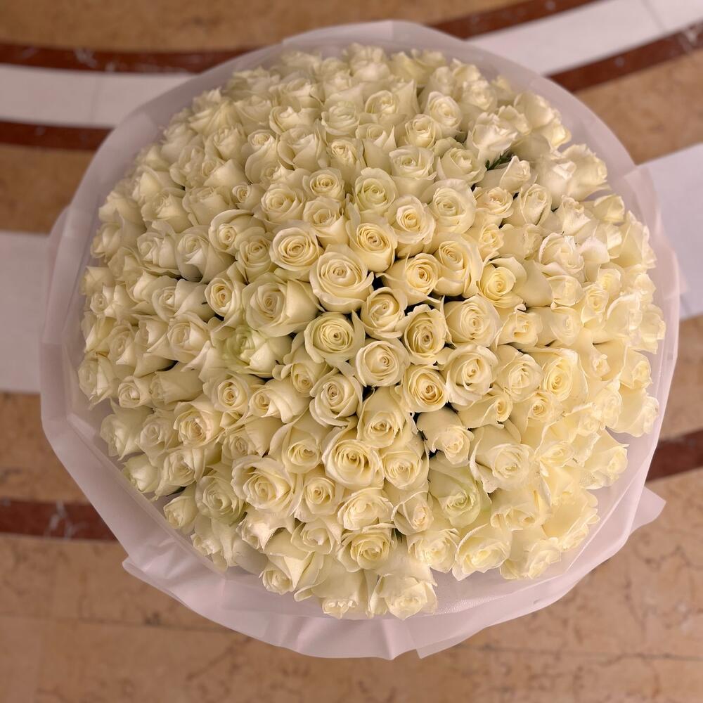 белые розы из полиэстера - 151 шт. крышка - 10 шт.