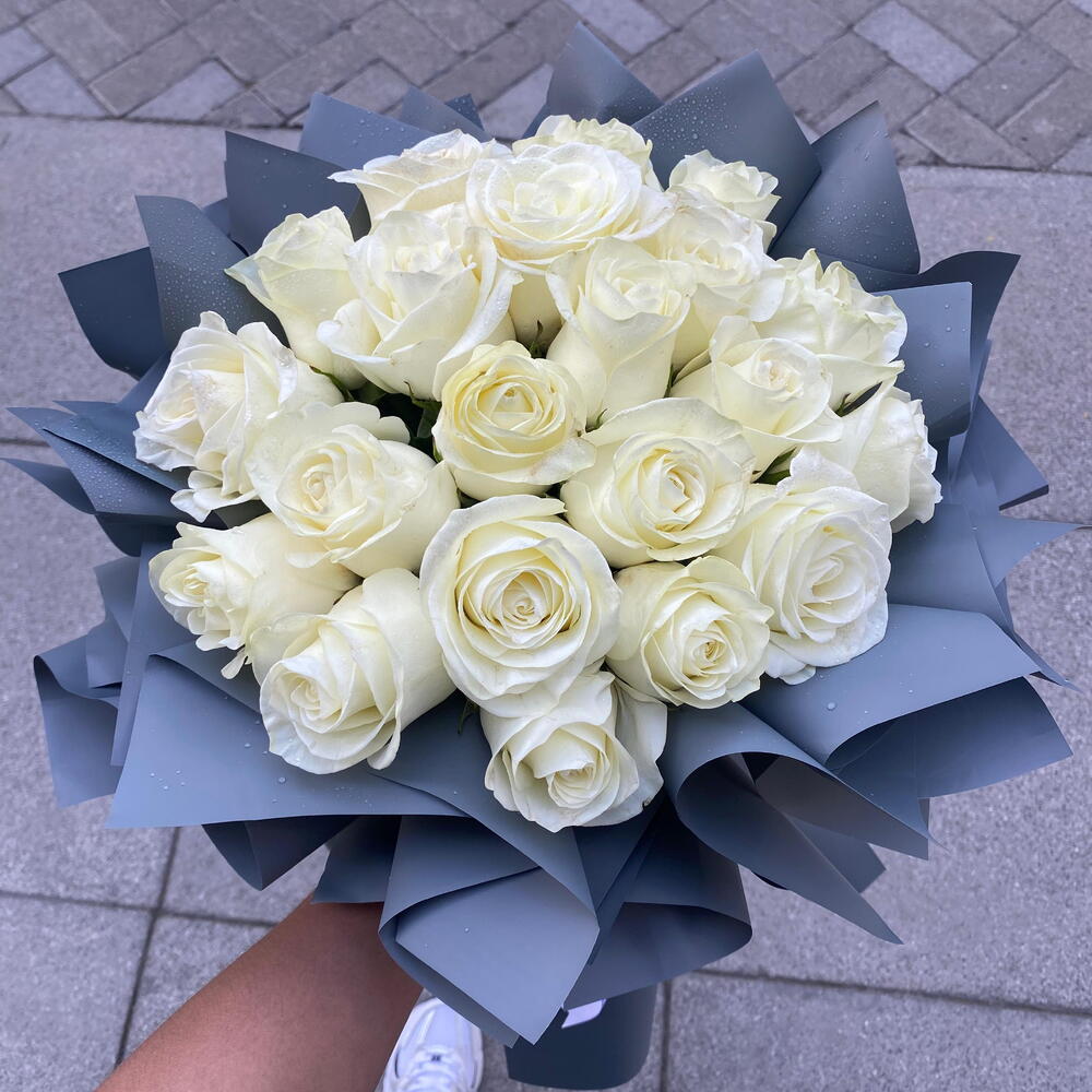 Букет из 20 белых роз — впечатляющий символ чистоты, почтения и новых начинаний. Эта изысканная композиция содержит двадцать безупречных белых роз, тщательно собранных для создания плотного и роскошного цветочного оформления. Упакованная в премиальную темно-серую бумагу с деликатными кремовыми и белыми лентами, она предлагает современный и контрастный вид, идеальный для свадеб, юбилеев или официальных торжеств. Ключевые характеристики Вечная изысканность: монохромная палитра из 20 премиальных белых роз, источающая грацию и элегантность. Контрастная презентация: глубокая серая упаковка служит драматичным фоном, который делает ярко-белые лепестки особенно выразительными. Изящные размеры: высокий и элегантный профиль, производящий впечатляющее впечатление: Ширина: 20 cm Высота: 30 cm Состав комплекта Каждая композиция изготовлена вручную из следующих премиальных материалов: Белые розы: 20 шт. Листы упаковочной бумаги: 7 шт. Атласная лента: 1 шт. Специальная цена (скидка 20%!) Воспользуйтесь нашей текущей акцией на этот элегантный цветочный букет: Исходная цена: 220 AED Цена со скидкой: 176 AED Выгода: вы экономите 44 AED!