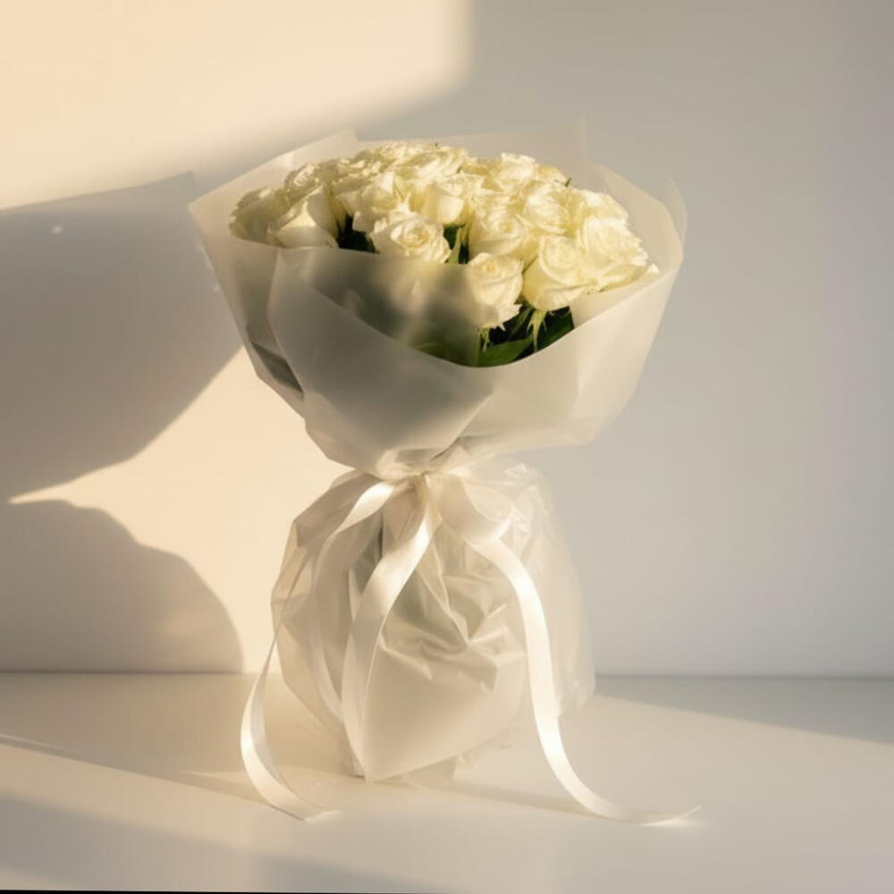 Элегантный букет из 20 белых роз, идеально подходящий для Дня матери, Дня святого Валентина и романтических случаев. Белые розы символизируют чистоту, уважение и искреннюю любовь, делая этот букет изящным подарком для вашей мамы, жены, девушки или кого-то особенного. Оформлен из свежих премиальных белых роз в элегантной упаковке, идеально подходит для выражения любви, признательности и заботы. Идеально подходит для цветов на День матери, букета ко Дню святого Валентина, подарка на годовщину, цветов соболезнования и доставки цветов в тот же день.