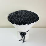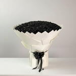 black ribbon - 4 шт. белая упаковочная бумага - 4 шт. черные розы - 201 шт.
